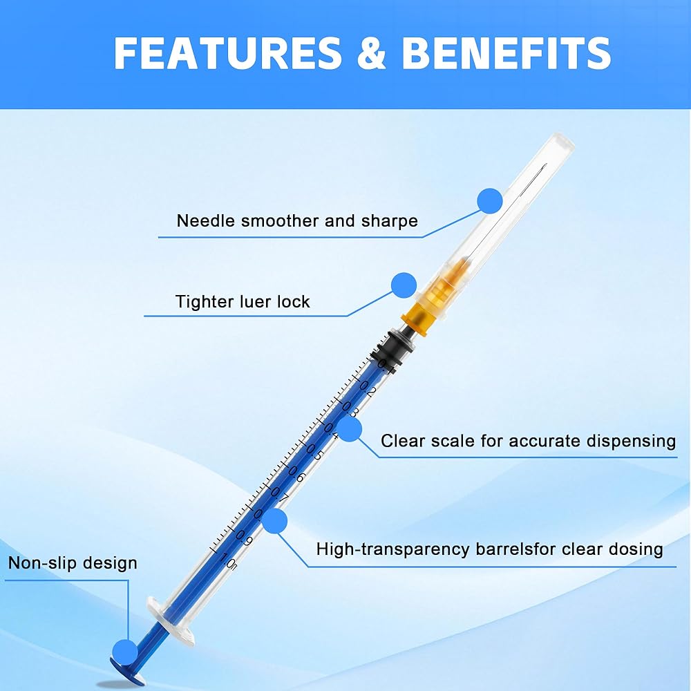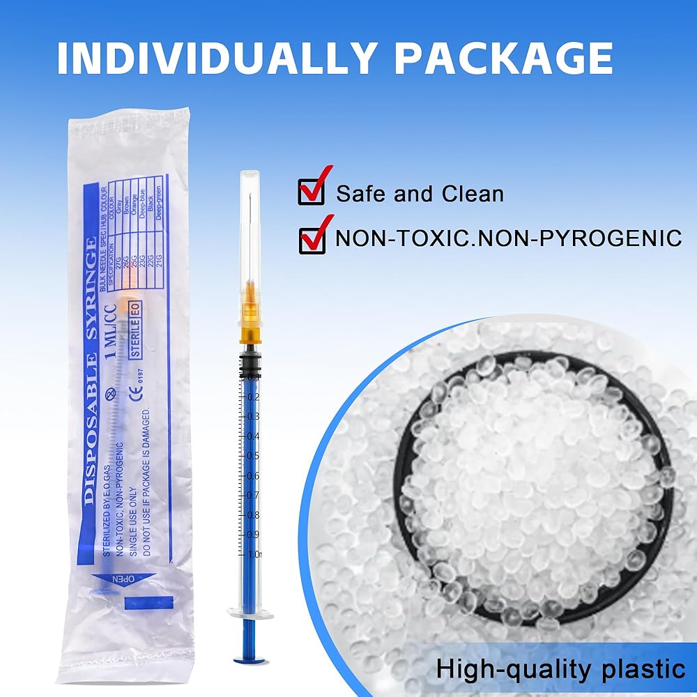 Individually Package: Each syringes with needles is individually packed in a sealed PE bag, pack of 100 gives you plenty to work with.