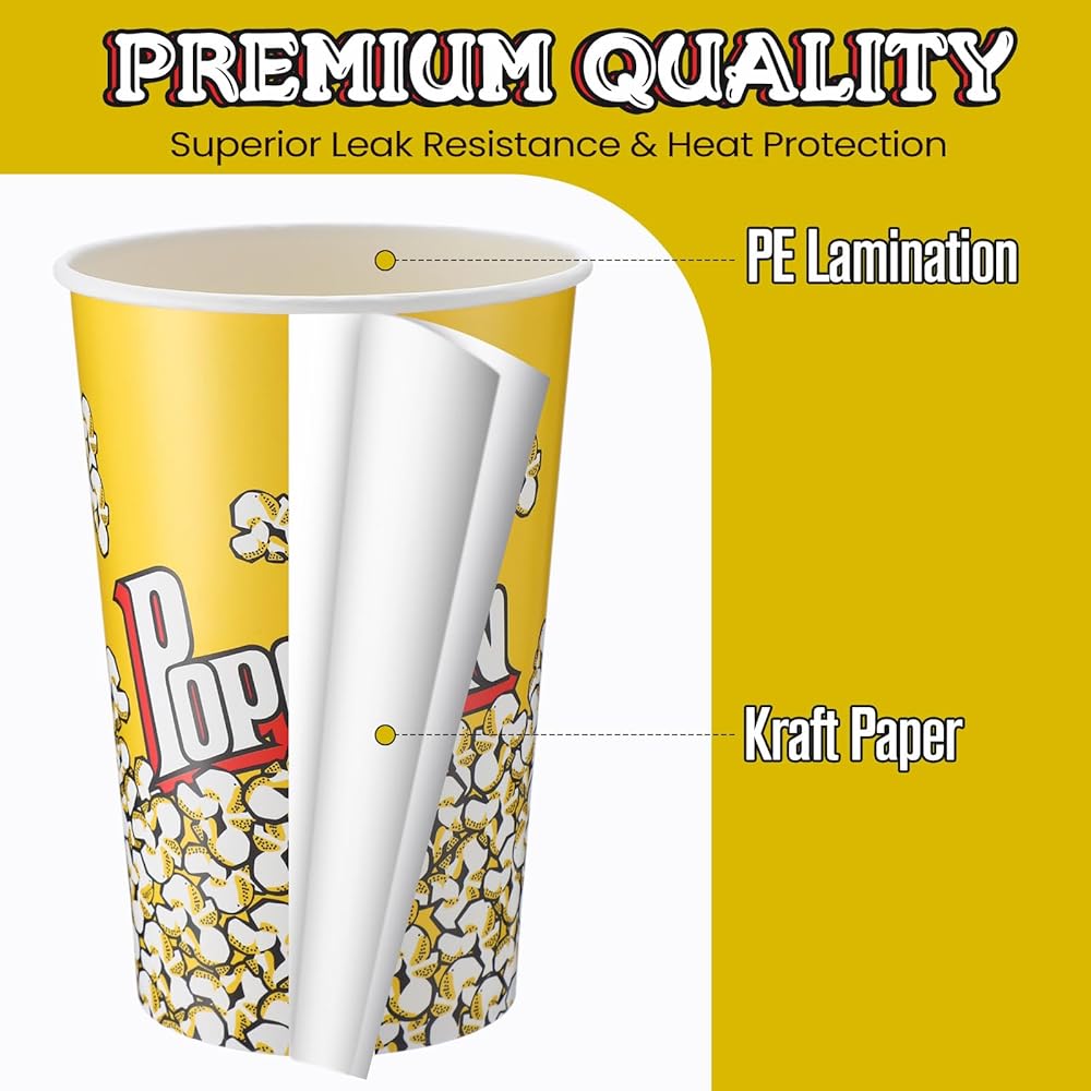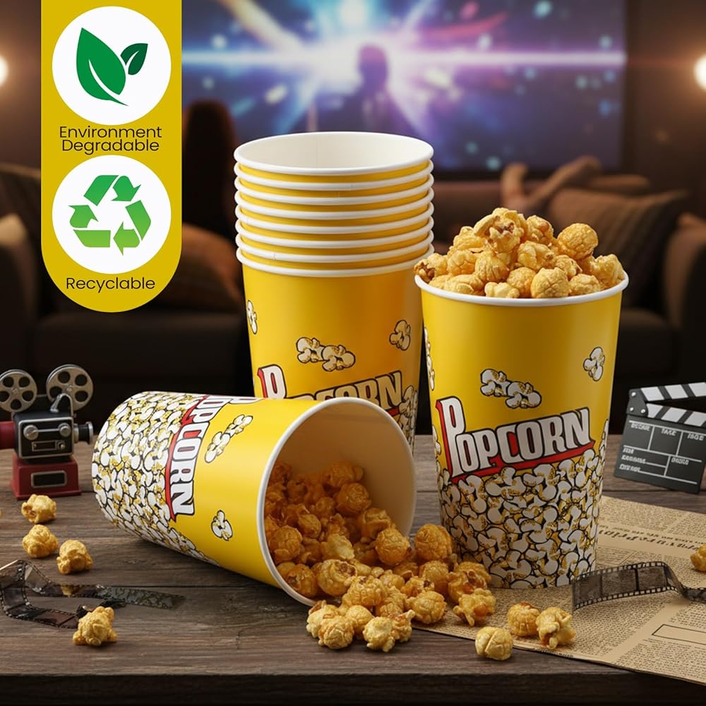 These paper popcorn buckets are suitable for so much more than just popcorn! Use them to serve candies, chocolates, fried chicken, marshmallows, and all your favorite snacks at movie nights, birthday parties, sleepovers, baby showers, holidays, and more.
