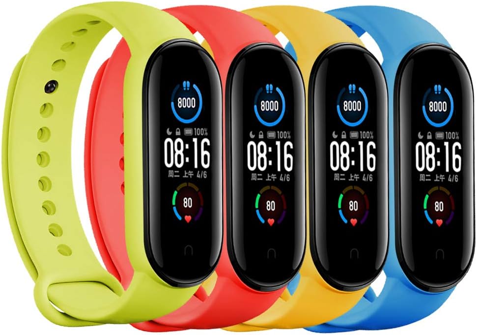LeongLzt(4/5/8 PACK Xiaomi Mi 5/6/7 حزام/Amazfit Band 5/6 أربطة بديلة لـ Mi Band 5/6/7 SmartWatch Band & Amazfit Band 5/6، أشرطة سيليكون ناعمة ومرنة صديقة للبشرة للذكور والإناث in Kuwait