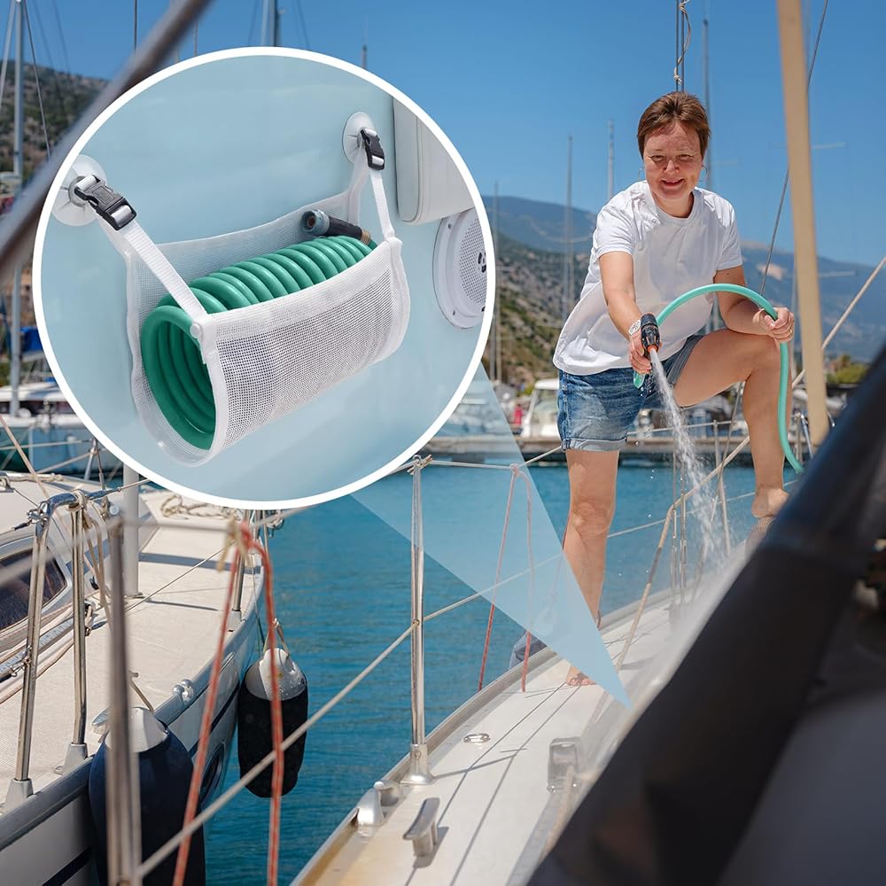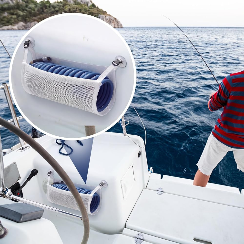 Our hose organizer is made of quality PVC mesh, which is lightweight, breathable, and can withstand harsh marine environments. The mesh design allows for quick drainage and ventilation, preventing water accumulation, mold, and odors after use.