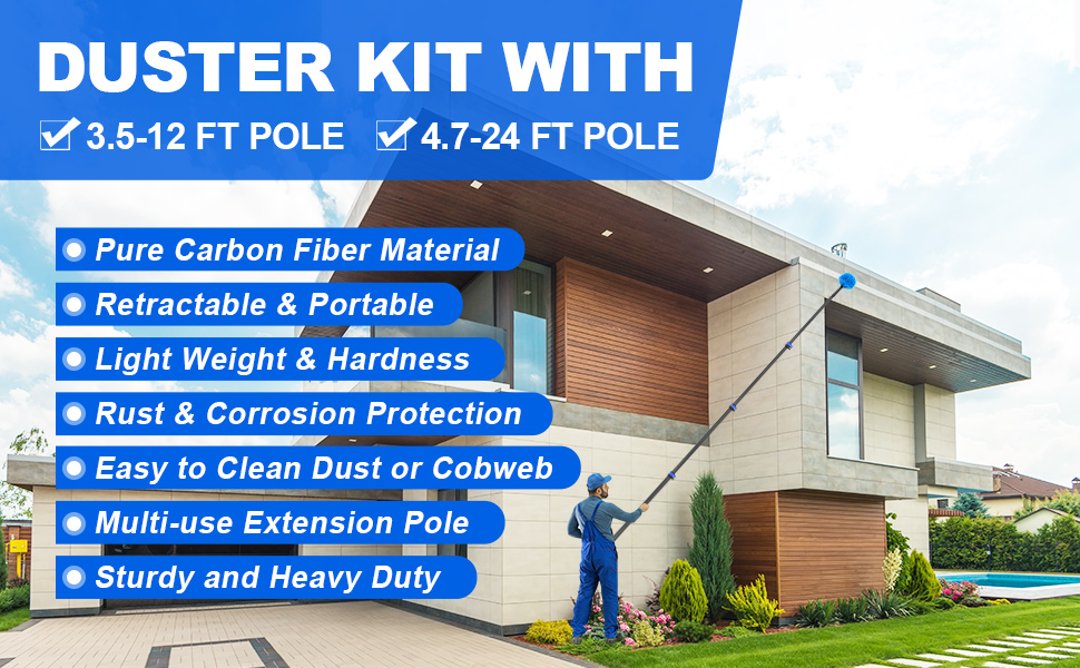 36 Foot High Ceiling Duster Kits with 4.7-30 FT Carbon Fiber Extension Pole, Feather Duster, Cobweb Duster, Ceiling Fan Duster, Window Squeegee & Cleaner with Pole 30 Ft