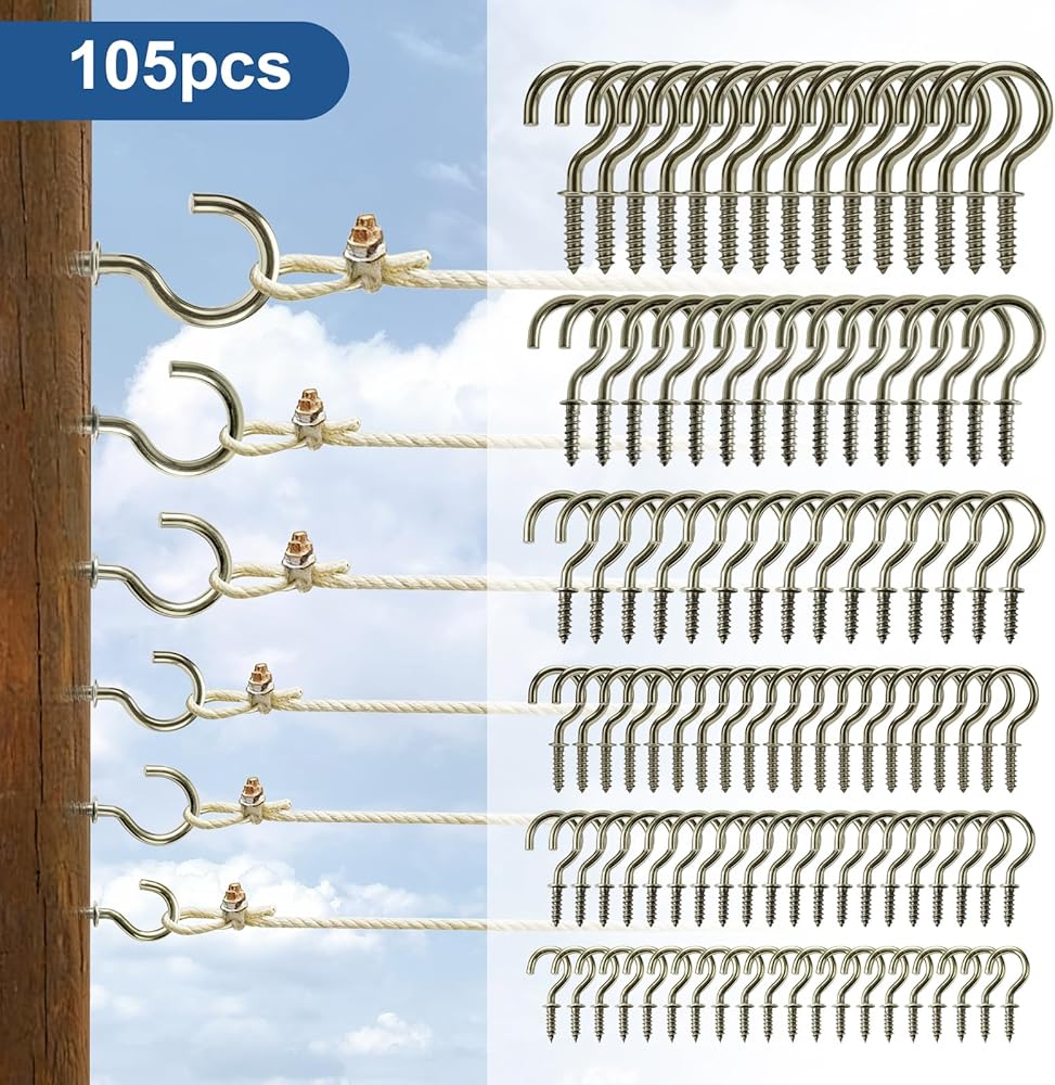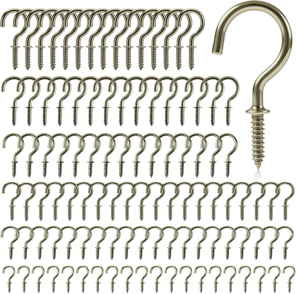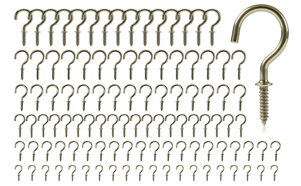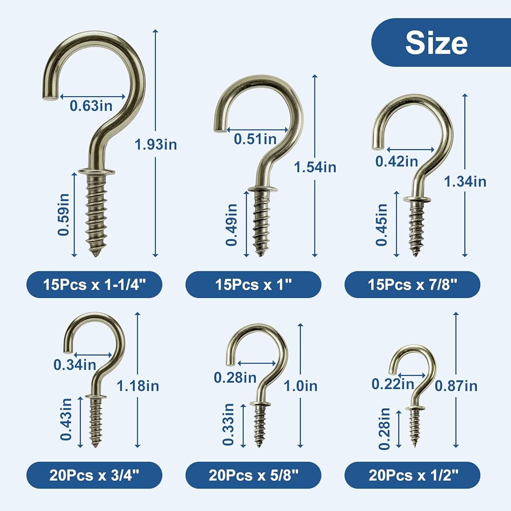 【ما تحصل عليه: سوف تحصل على 105 قطعة من خطافات المسمار في 6 مقاسات: 1-1/4 بوصة (15 قطعة)، 1 بوصة (15 قطعة)، 7/8 بوصة (15 قطعة)، 3/4 بوصة (20 قطعة)، 5/8 بوصة (20 قطعة)، 1/2 بوصة (20 قطعة). إذا كان لديك أي مخاوف أو تريد معرفة المزيد عن منتجاتنا، يرجى الاتصال بنا