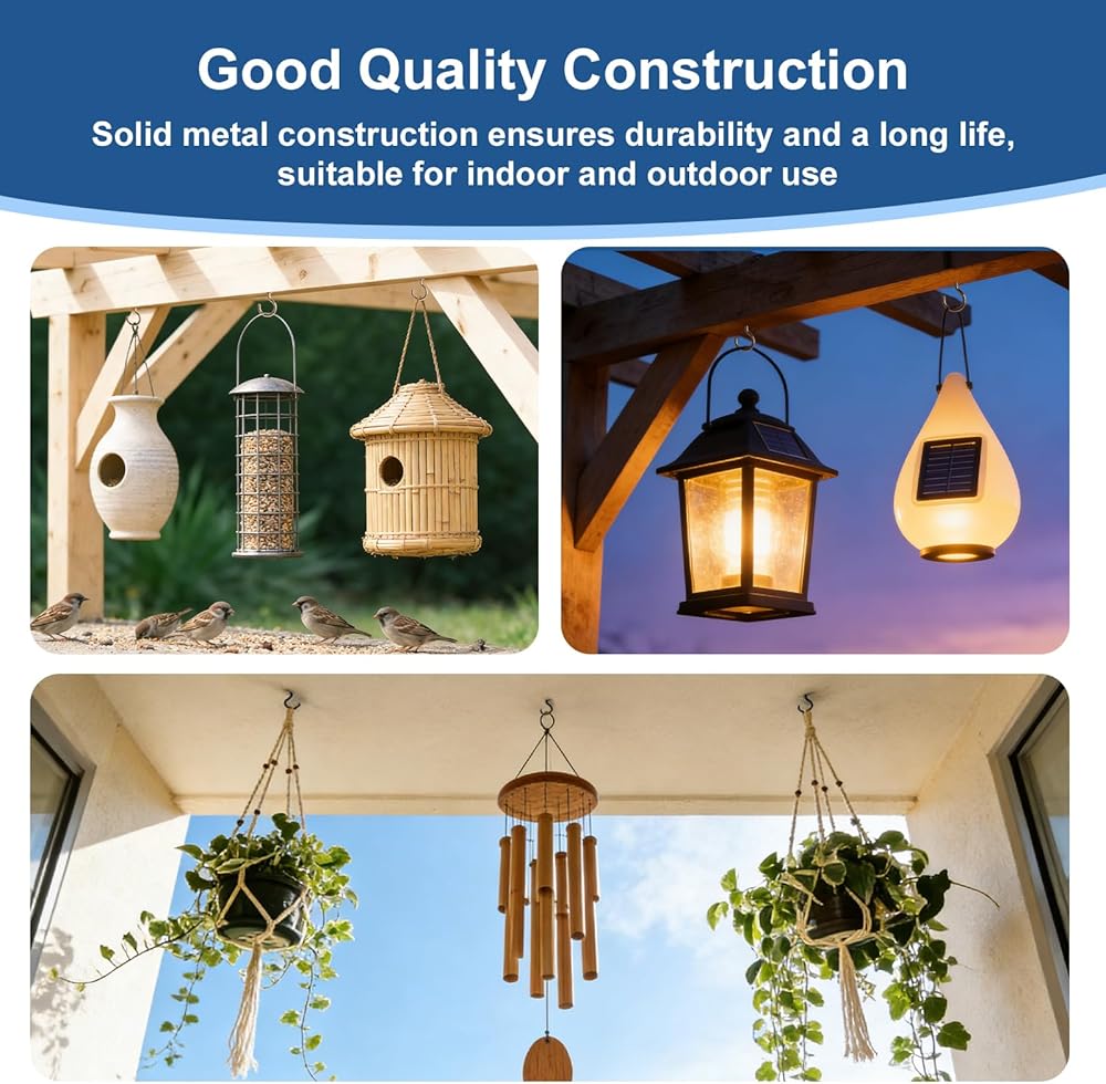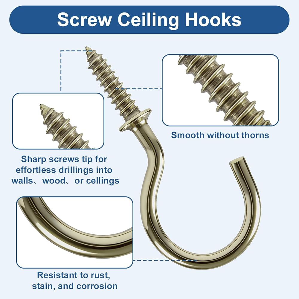 【مادة متميزة】خطافات السقف الخاصة بنا مصنوعة من معدن عالي الجودة مع سطح مطلي بالبرونز، مما يوفر مقاومة عالية للتآكل. السطح أملس وخالي من النتوءات، لذلك لن يخدش يديك أو أغراضك الثمينة. يمكنك استخدامها في الداخل والخارج لفترة طويلة دون قلق