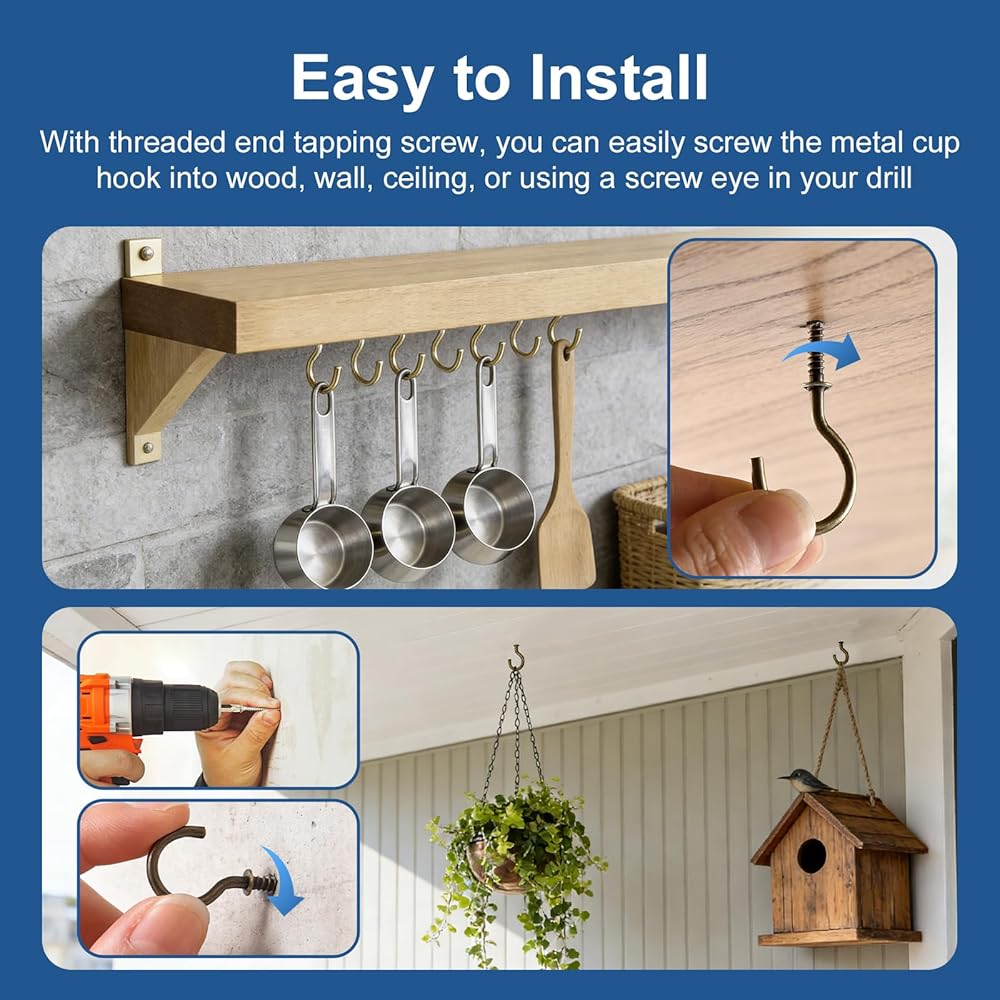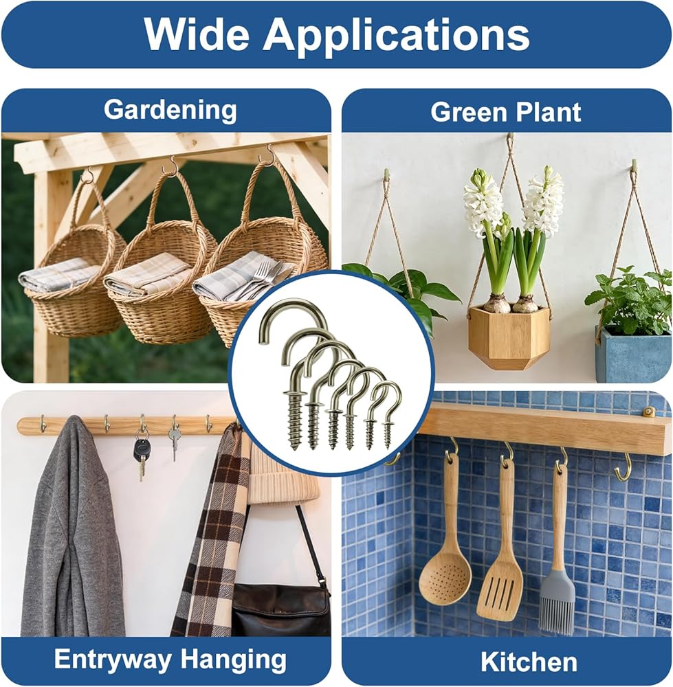 【قبضة قوية】 تتميز خطافات الأكواب هذه بخفة الوزن ولكنها شديدة التحمل، وليس من السهل الانحناء أو السقوط. إنها قوية وموثوقة، ومصممة لتوفير تثبيت قوي وآمن لجميع أنواع المشروعات المعلقة. مناسبة للاستخدام المنزلي اليومي ومهام الأعمال اليدوية المختلفة، فهي توفر أداءً ثابتًا وتلبي احتياجات كل من المستخدمين المحترفين أو عشاق الأعمال اليدوية