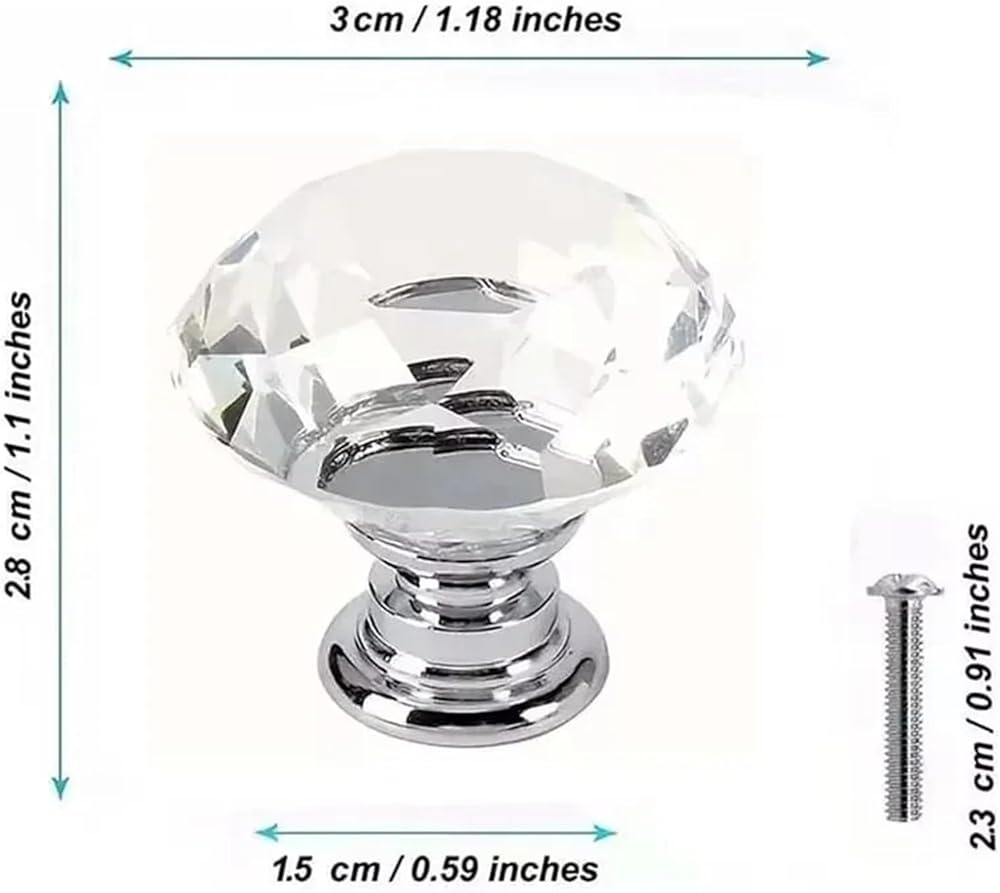30mm Diamond Shape Design Crystal Glass Cupboard Drawer Pull Kitchen Cabinet Door Wardrobe Handles Hardware 4/8Pcs
