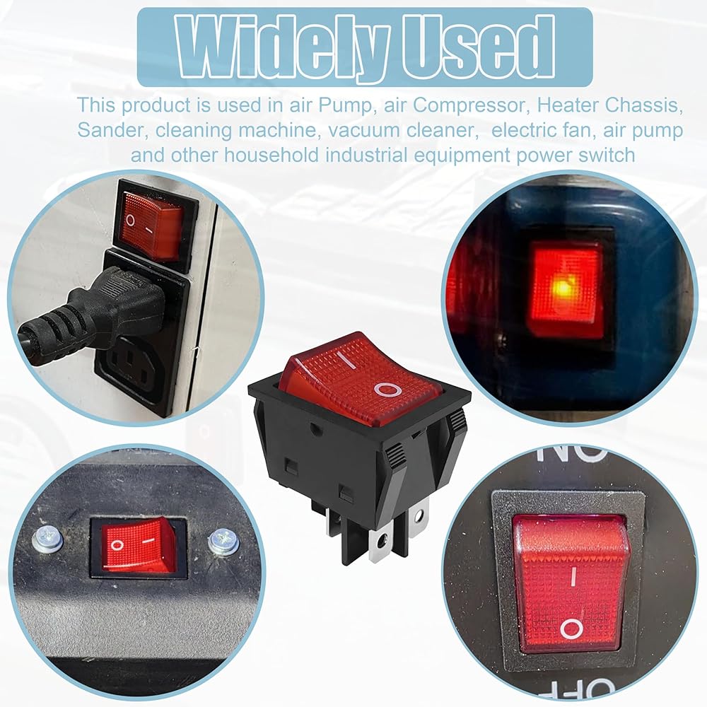 • Rated Current : Large Current Rocker Switch, 30A/250VAC, 35A/125V AC. the switch can be used well on 3A, 6A,10A, 20A, 25A , 30A at 120 Volt or 240 Volt.