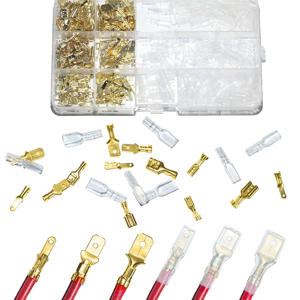 ما الذي ستحصل عليه من هذه العبوة: سوف تحصل على صندوق مكون من 360 قطعة من مجموعة موصلات الأشياء بأسمائها الحقيقية. تتضمن العبوة 40 قطعة 2.8 مم مجموعة موصلات بأسمائها الحقيقية للذكور والإناث، 40 قطعة أكمام عازلة 2.8 مم، 40 قطعة 4.8 مم طقم موصلات بأسمائها الحقيقية للذكور والإناث، 40 قطعة أكمام عازلة 4.8 مم، 40 قطعة 6.3 مم طقم موصلات بأسمائها الحقيقية للذكور والإناث، 40 قطعة أكمام عازلة 6.3 مم.