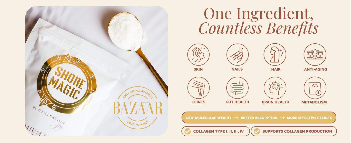 تعزيز الجمال ومكافحة الشيخوخة - الاستخدام المنتظم قد يقلل من الخطوط الدقيقة والتجاعيد، ويقوي الأظافر ويحسن نسيج الشعر - للحصول على بشرة مشرقة وشعر لامع وأظافر قوية.