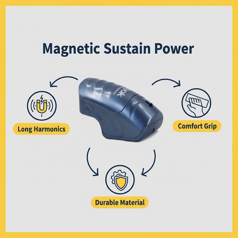 It enables our electric guitar to offer legato,overtone, long sustain, vibrato and more from stringed instruments played with a bow by the magnetic field effect.