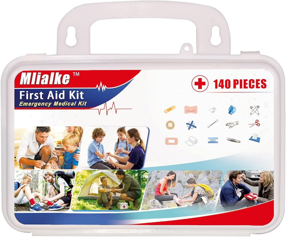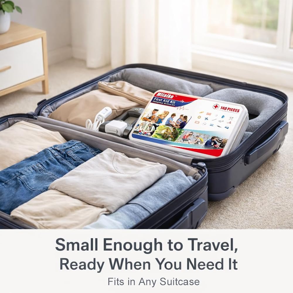 مجموعة الإسعافات الأولية المكونة من 140 قطعة، لوازم الطوارئ المحمولة للمنزل، السيارة، السفر، التخييم، المشي لمسافات طويلة، الرياضة، المكتب، المركبات، في الهواء الطلق