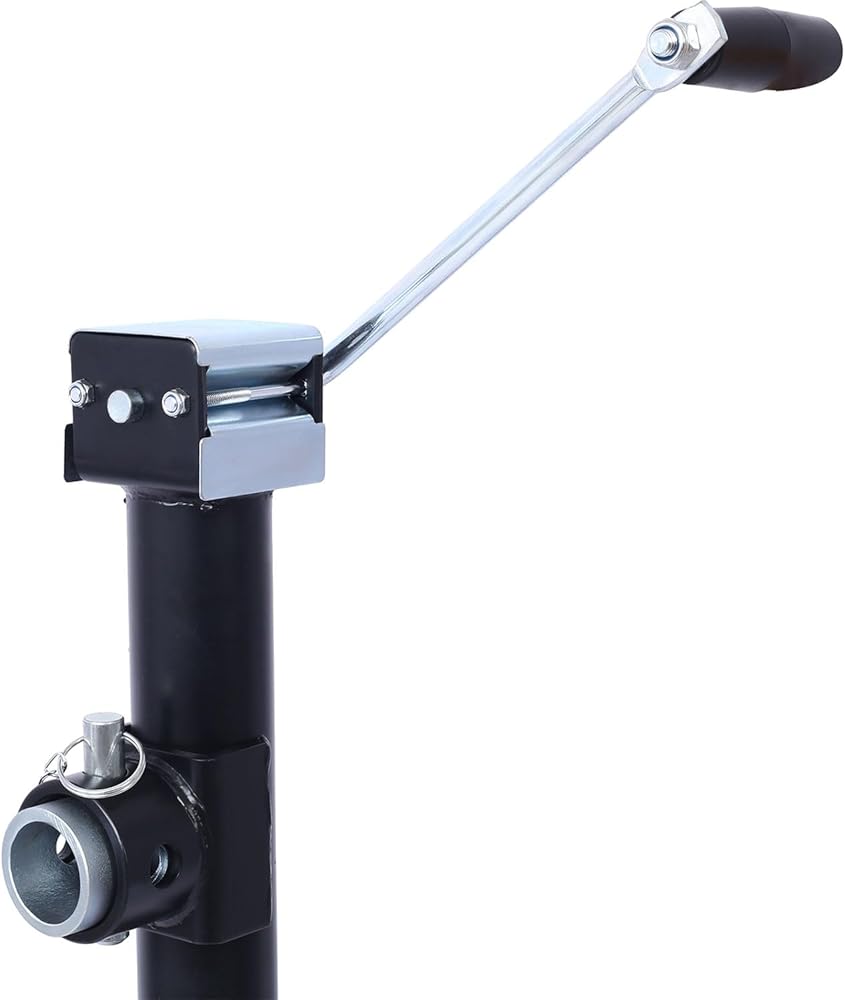 Swivel Design for Towing Clearance: Pipe-mount swivel bracket allows the jack to swing up and lock parallel to the trailer tongue when not in use, offering excellent ground clearance while towing.