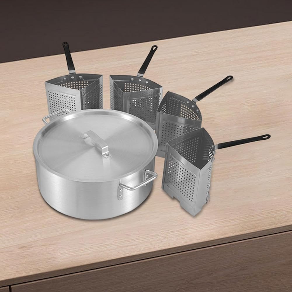 - 【Complete Cooking System】: This pasta cooker includes 1x 20 Qt aluminum main pot and 4x 5 Qt stainless steel strainer baskets, creating a complete cooking system that allows you to prepare multiple types of food simultaneously, ideal for large families and dinner parties