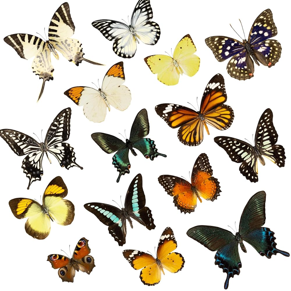 15 Pcs Real Butterfly Specimen, Taxidermy Dried Dead Butterflies with Spread Wings Shaped, Natural unmounted Butterfly, Artwork Material Decor, DIY Creative Production, Taxidermy Animals Gifts for Kids Family