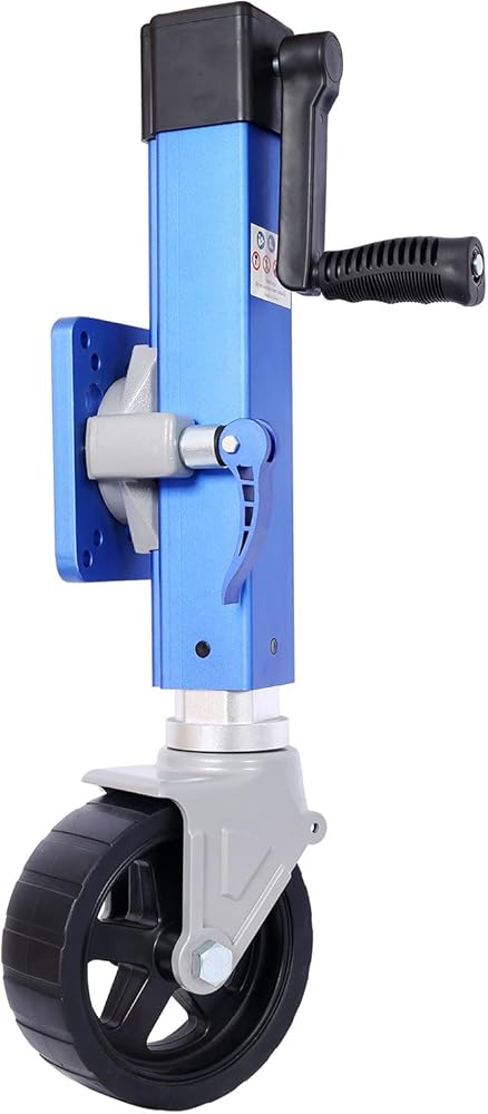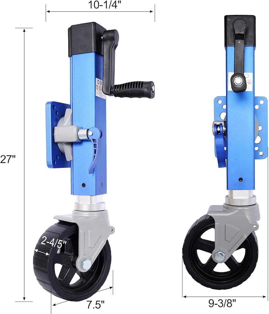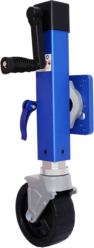 Smooth Rolling 7.5" Wheel for Easy Maneuvering: Equipped with a durable 7.5-inch wheel, this jack allows smooth movement on pavement and hard ground, making hitching, unhitching, and positioning more efficient.