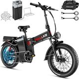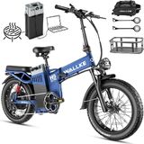 【Rust-Free Alum Frame: 400LB Capacity, 5x Longer Life】Most e bikes use 1mm tubing steel and rust after months, a disposable toy. Wallke use 3MM aerospace aluminum alloy—No Rust, No Flex, 5-10x longer life. That means 400lbs total load capacity (150lbs rack), haul a heavy rider plus 150LB of gear without bending. Foldable ebike design saves space, fits trunks. Best electric bicycles for men for camping, hunting, food delivery, commute, heavy-duty hauling. Rust-free + thick frame = Built to Last.