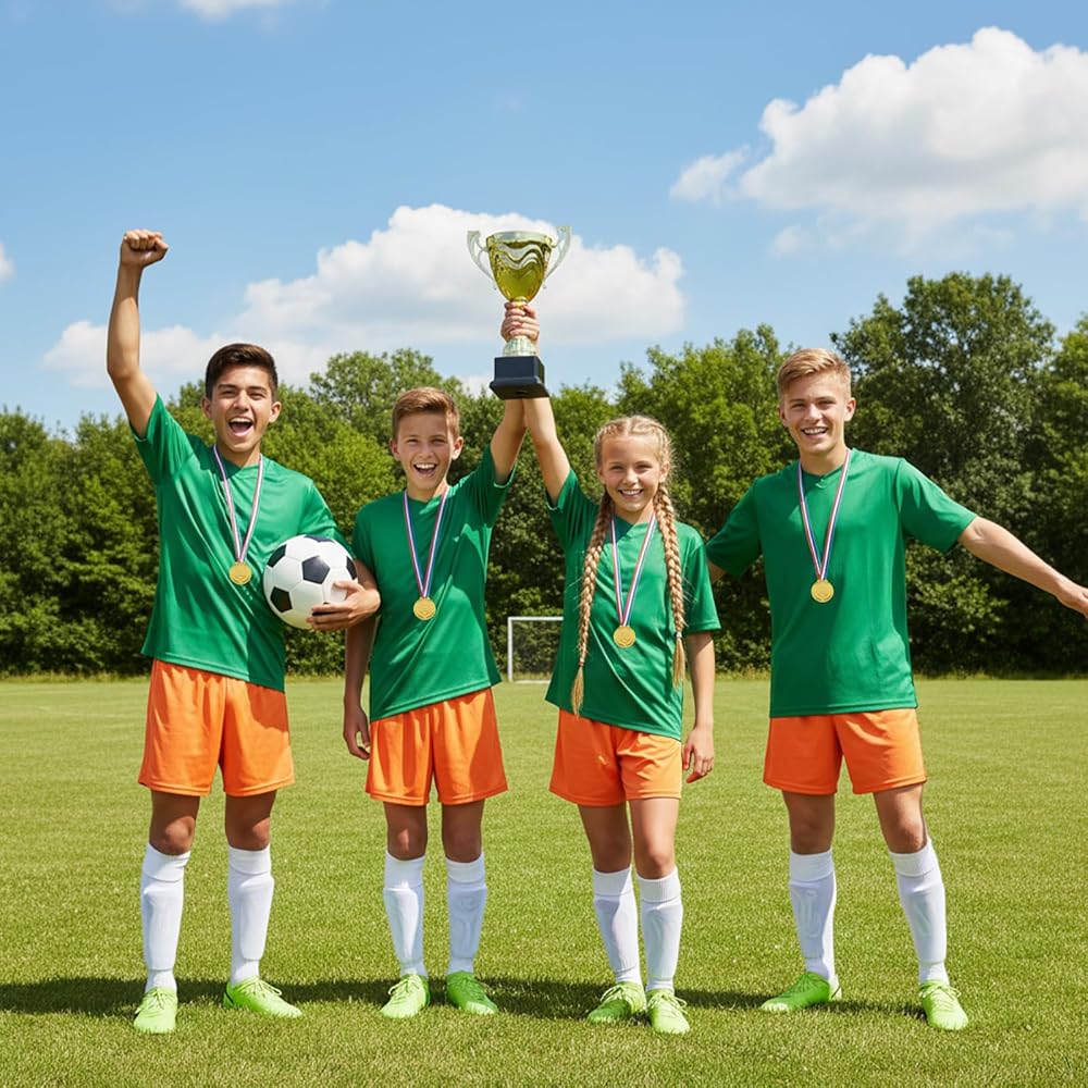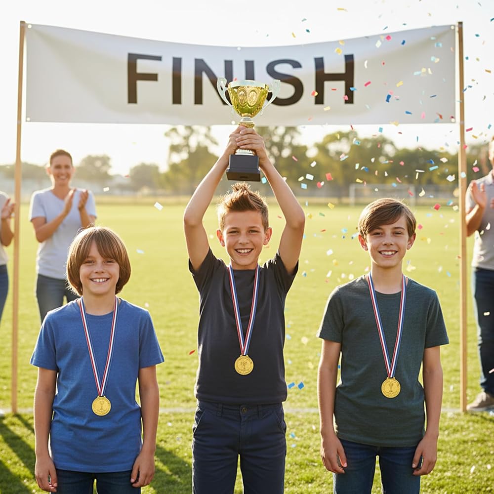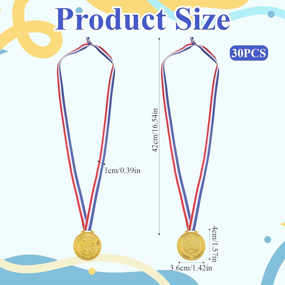 • Perfect Child-Friendly Size: Each gold medals for kids measures 3.6 cm (1.42 inches) in diameter and comes with a ribbon that's approximately 38 cm (15.2 inches) when folded, fitting comfortably around a child's neck. The size is ideal for young champions to proudly display their accomplishment.