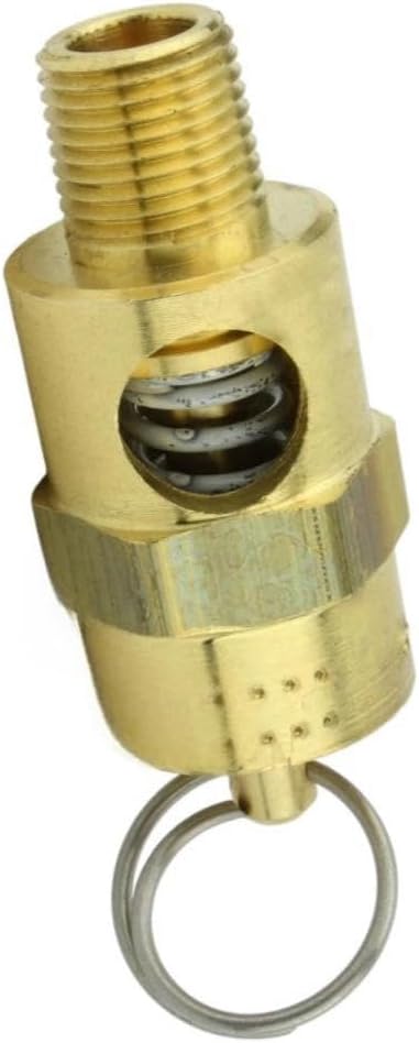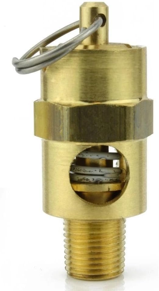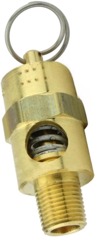 صمام منبثق لضغط الخزان 250-1/8-125 - لأجزاء خزانات تخزين ضاغط الهواء كونرادر - صمام تخفيف أمان ضاغط الهواء - 1/8 بوصة NPT 125 PSI 112 SCFM إجمالي طول الصمام: 1-3/4 بوصة نحاس صلب