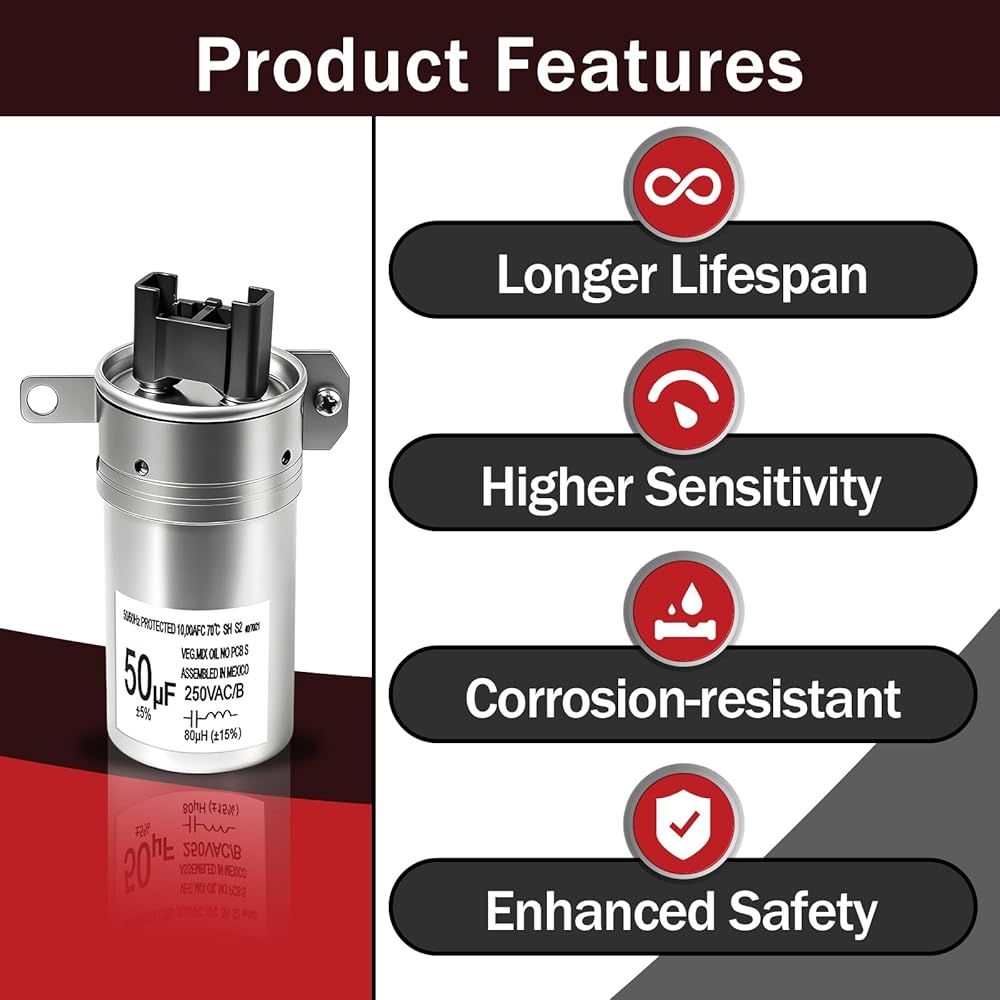- مطابقة دقيقة للمواصفات: مكثف البدء W11395618 هذا هو 50 درجة فهرنهايت ±5% و250 فولت تيار متردد، مما يوفر عزم الدوران المطلوب لبدء التشغيل