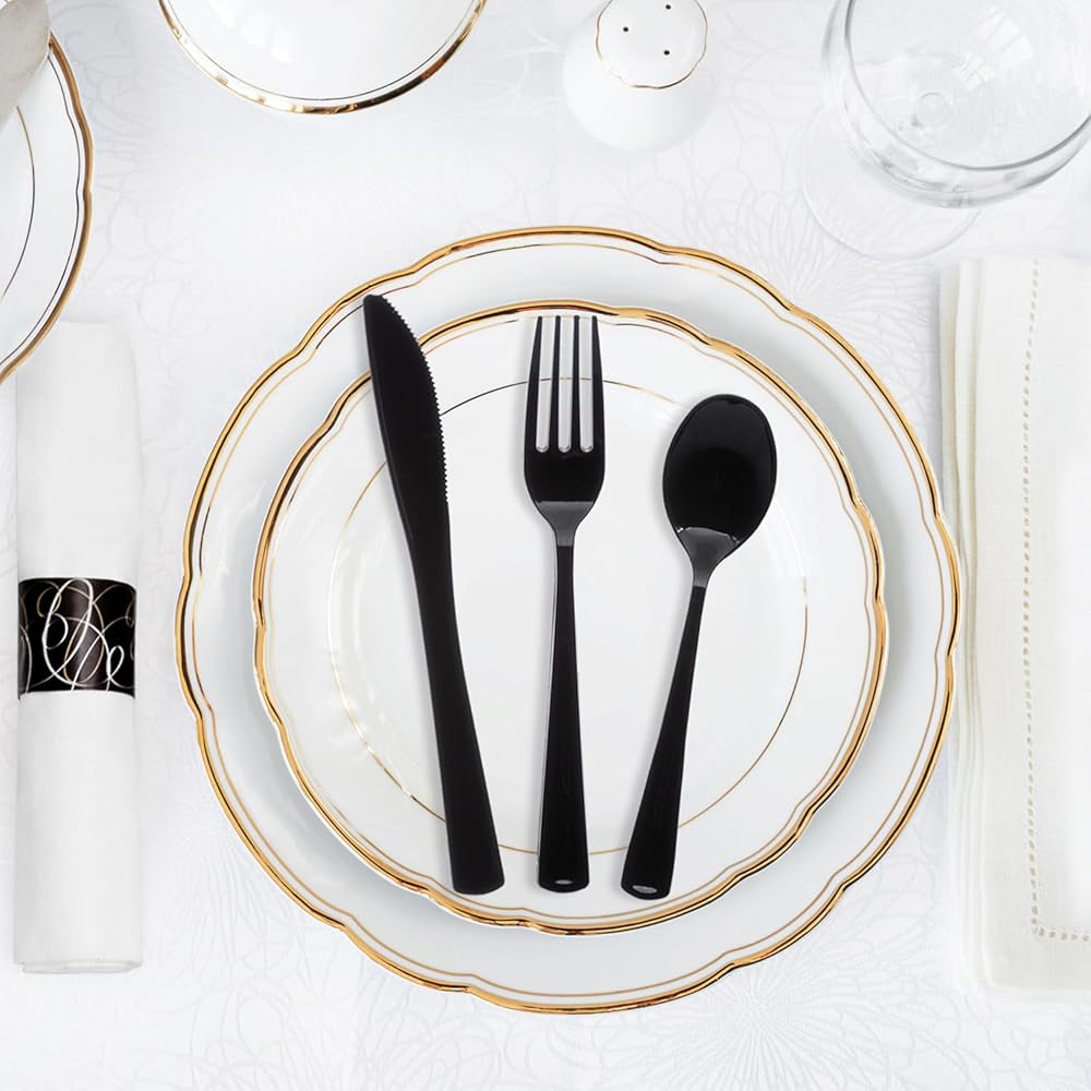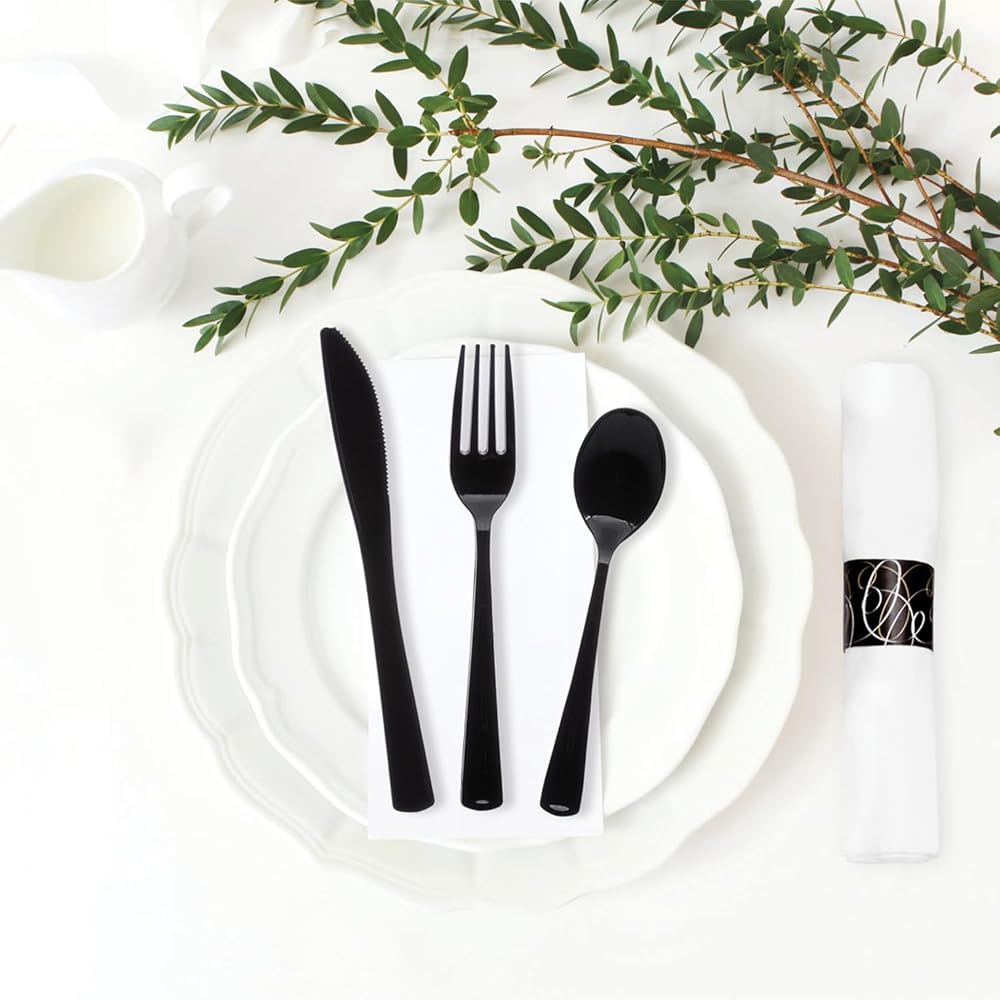 • Black plastic cutlery coordinates with other black utensils and many tableware designs and decorations.