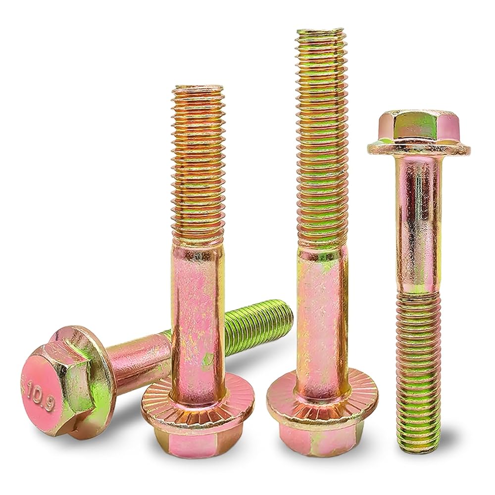 M8 × 60 مم 10 قطع براغي سداسية ذات حواف شديدة التحمل، براغي رأس سداسية شفة، سبائك فولاذية درجة 10.9، مطلية بالزنك الأصفر، نصف خيط متري in Kuwait
