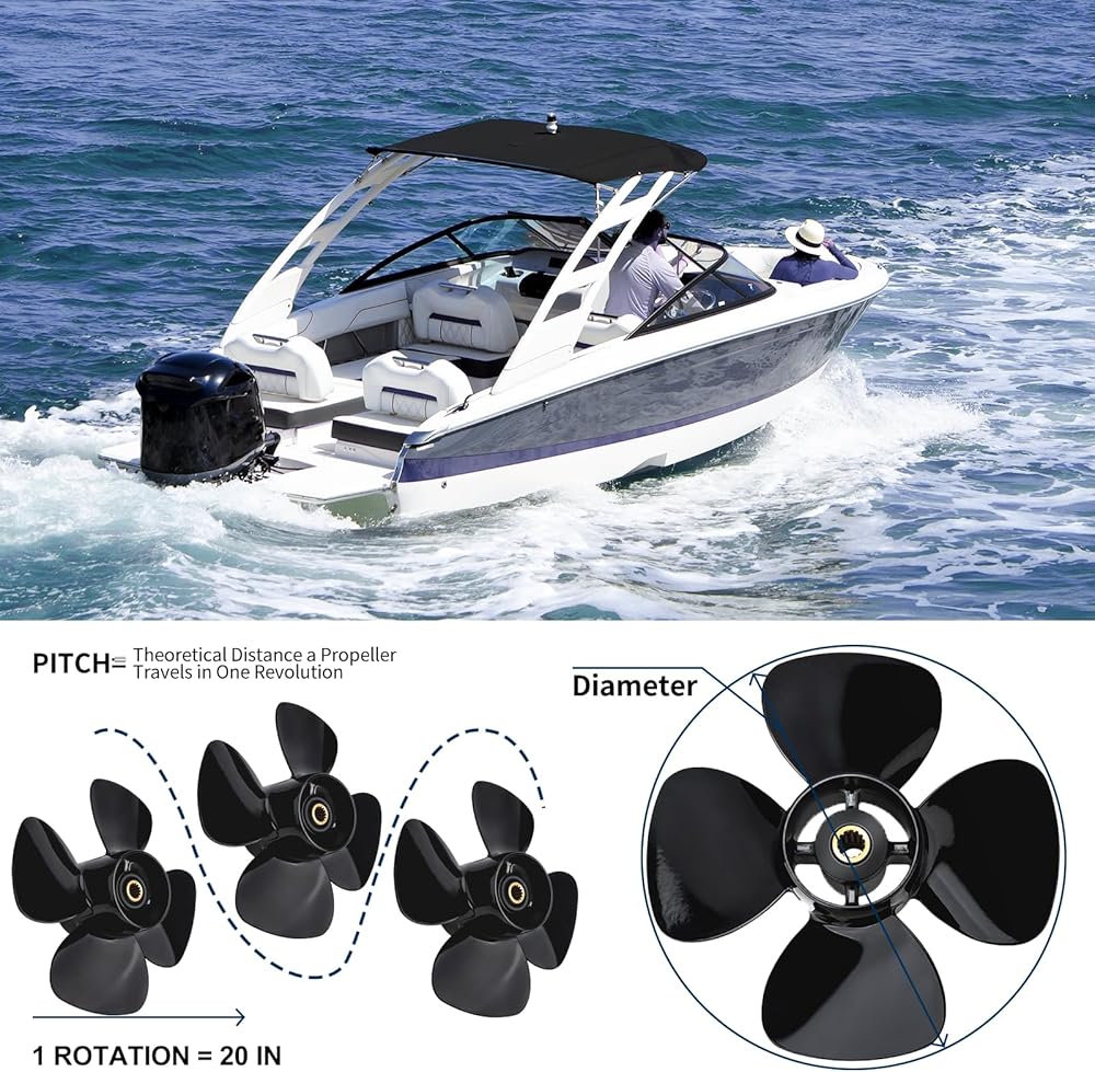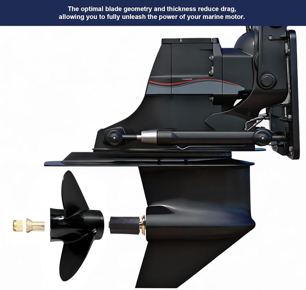 【التوافق: اختر المروحة البحرية المتوافقة مع محرك القارب الخاص بك. يجب أن تتوافق المروحة مع قوة المحرك ونسبة التروس وعدد الشرائح الموجودة على عمود المروحة.