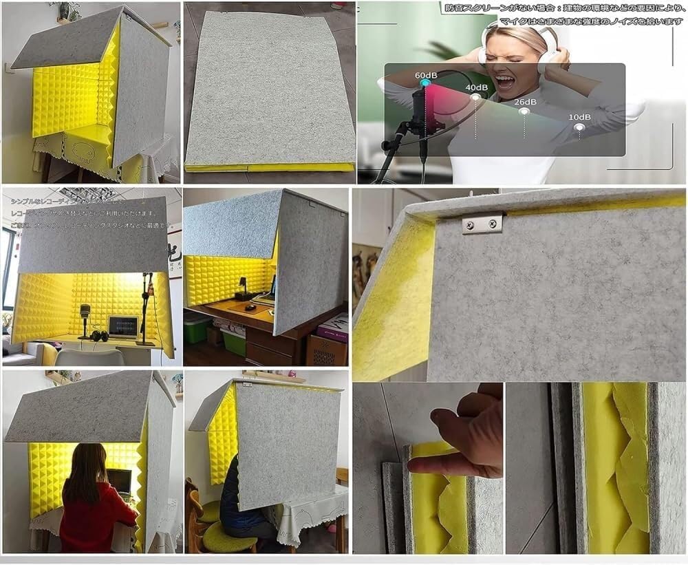 Our felt desktop cubicles are the perfect solution for those who want a private workspace at their desk. With a simple setup, you can instantly create a private area that is conducive to concentration and productivity: Simple Soundproof Room Desktop Material: polyester fibre acoustic panel Material: polyester fibre acoustic panel + high-density acoustic cotton, W 80 x D 80 x H 80 cm Note: Due to the different methods of measurement, the measurements may vary slightly. Please refer to the actual product.
