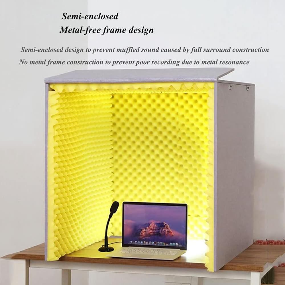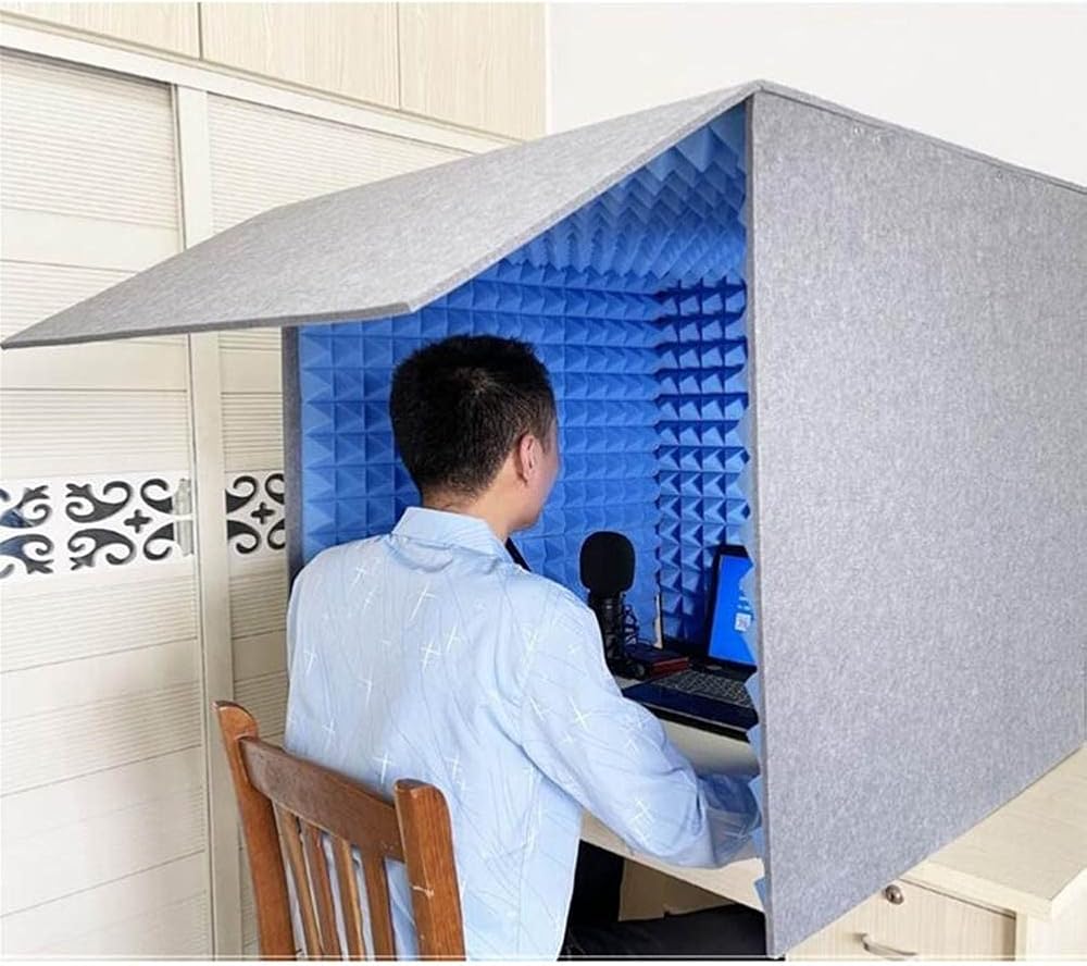 Introducing the "Desktop Sound Absorbing Box," a compact and portable solution for your recording needs. This simple yet effective design can be easily folded and carried, making it convenient for users on the go. Crafted with polyester fiber sound-absorbing panels and high-density sound-absorbing cotton, it excels at reducing external noise interference and environmental sounds, ensuring a pristine recording environment. The installation process is hassle-free, providing stability when placed directly on your desktop.Create your personal workspace with our desktop partition booth, made of felt. Set it up on your desk to establish a private area where you can focus on your tasks and work without distractions.Product Parameters: