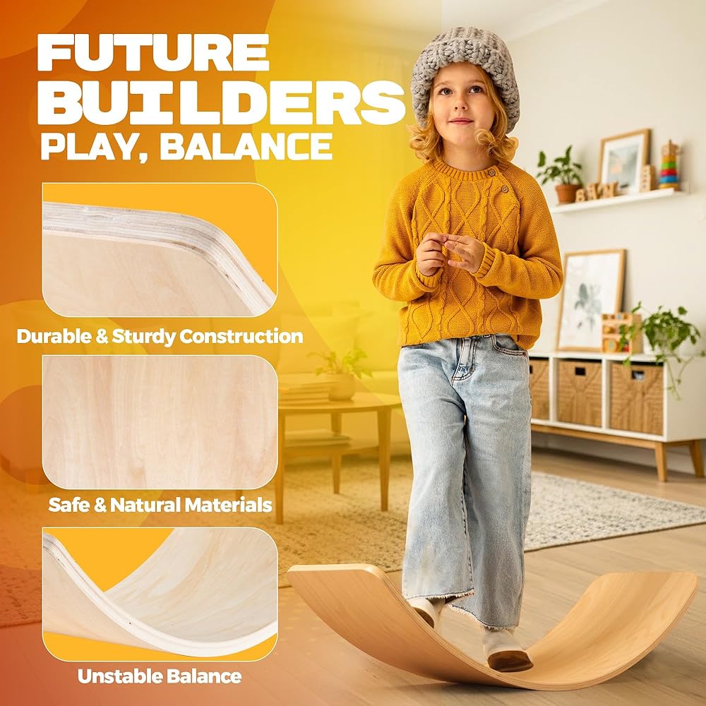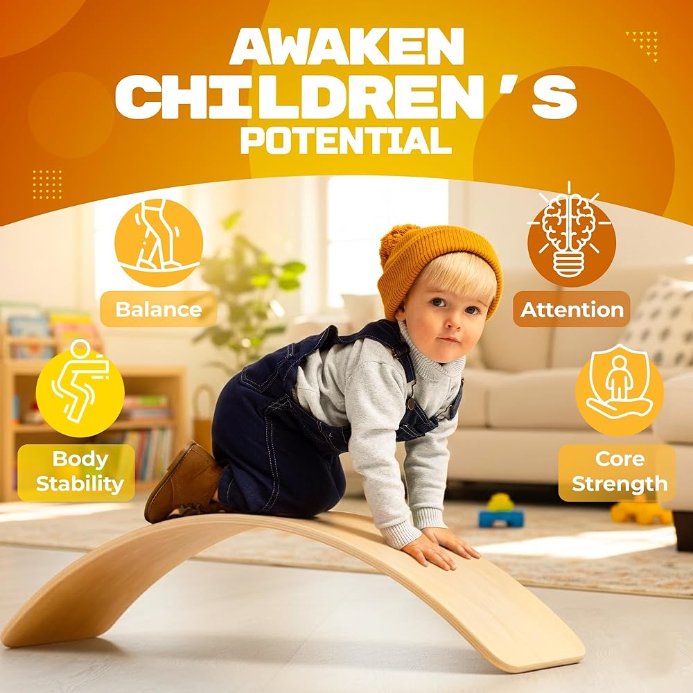 لوح تمايل خشبي للأطفال، لعبة تعلم والدورف مفتوحة النهاية للعب في الأماكن المغلقة، لوحة التوازن للبالغين | لوح هزاز متعرج لتدريب التوازن الأساسي لليوجا والتمارين الداخلية، ألعاب مونتيسوري