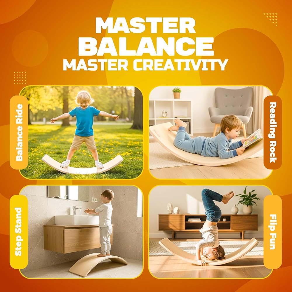 • 【لعب ومرح لا نهاية له】توفر لوحة التوازن للأطفال لعبًا لا نهاية له وتجربة تعلم ممتعة مثل الأرجوحة أو الجسر أو المقصورة أو حجر الخطوة أو معدات اللياقة البدنية أو أداة تتأرجح أو نفق لتشجيع التعلم من خلال الحركة. مثالية لتطوير المهارات الحركية، والوعي المكاني، وبناء التركيز المعرفي والتنسيق، وتعزيز الثقة بالنفس - بديل ممتع مثالي لوقت الشاشة.