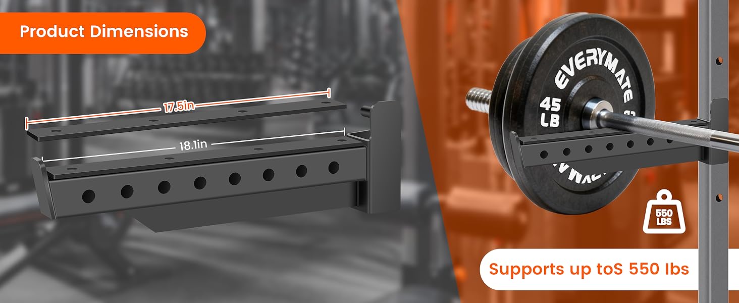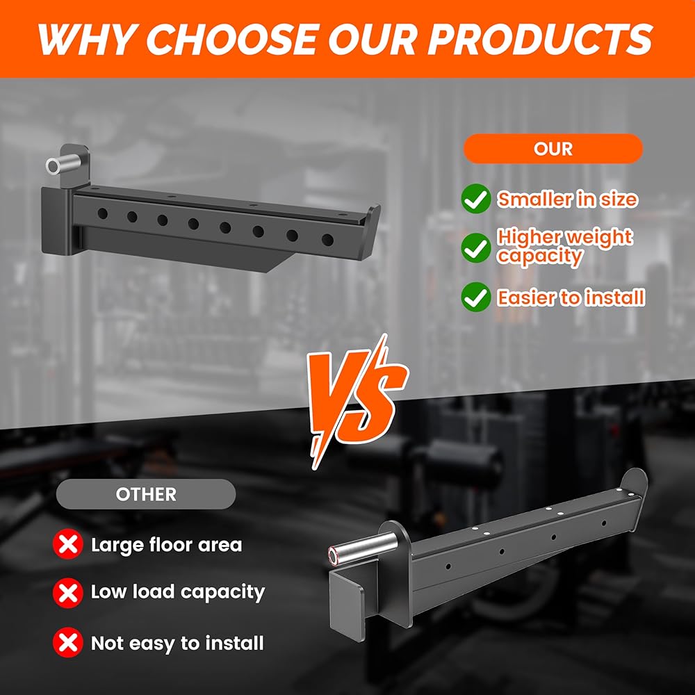 【Practical Load Capacity & Lightweight Design】These spotter arms can withstand up to 550LB, suitable for daily strength training needs. The lightweight design makes installation and adjustment more convenient, ideal for personal gym use.