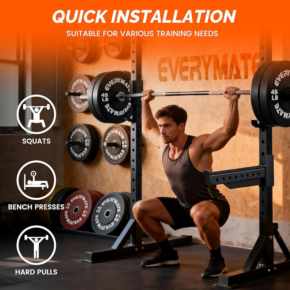 【Versatile for Daily Training】Ideal for various strength exercises such as squats, bench presses and shoulder presses. The compact and practical design makes it a great addition to your home gym, providing reliable safety support for your workouts.Ideal as practical power rack accessories, they integrate seamlessly with most home and garage gym setups for your squat rack safety bars and spotter arms for squat rack needs.