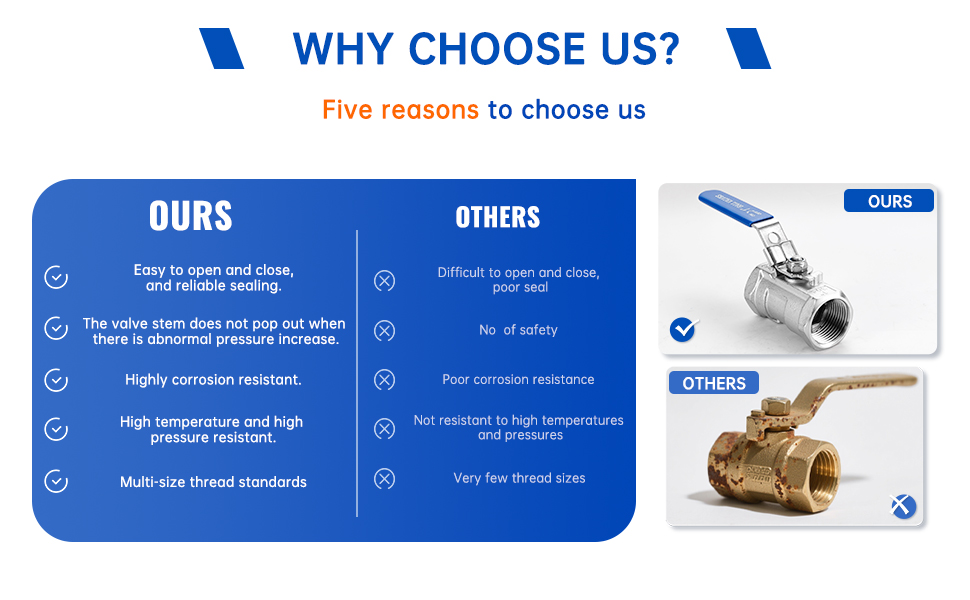 【صمام كروي متين من الفولاذ المقاوم للصدأ】 - يضمن هذا البناء عالي التحمل من الفولاذ المقاوم للصدأ 304 مقاومة التآكل وأداء طويل الأمد في درجات الحرارة القصوى وبيئات الضغط العالي.