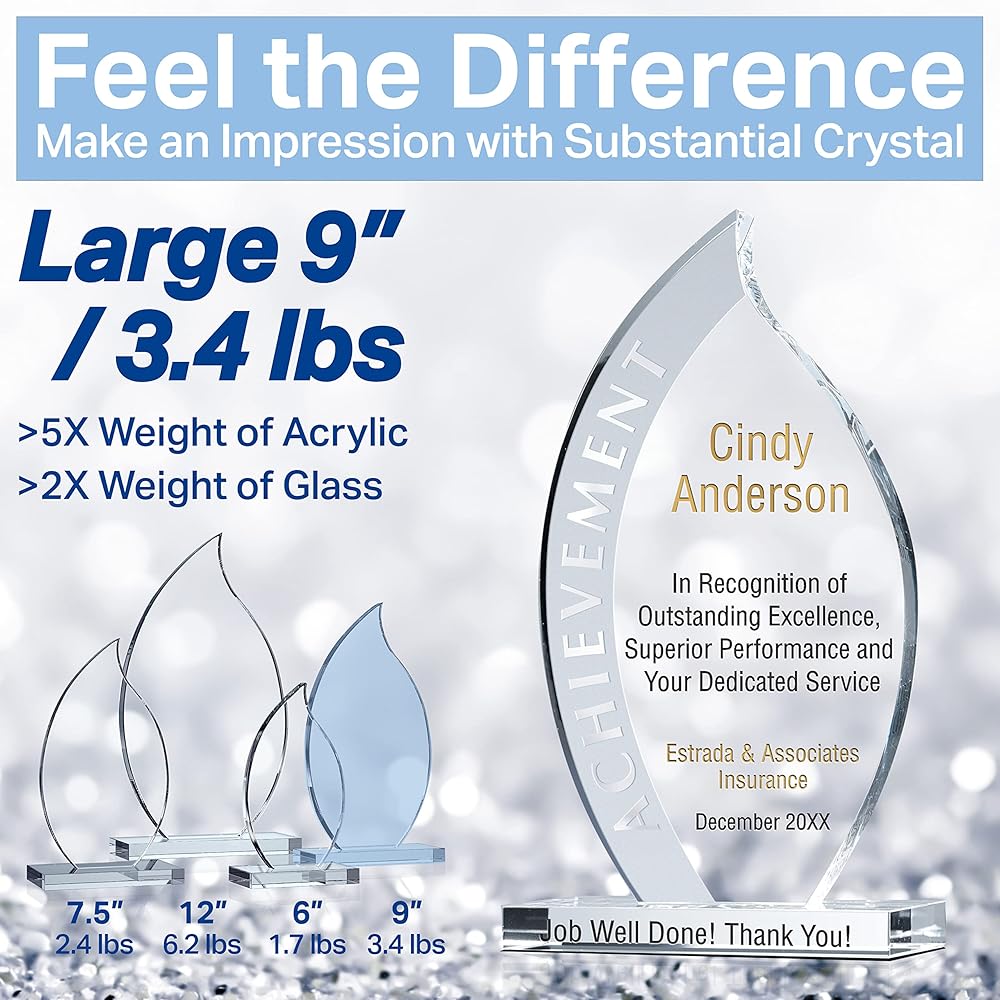 حرفية ممتازة: جوائز ولوحات كريستالية بصرية مصنوعة يدويًا تتميز بالوضوح والتألق والوزن الكبير.