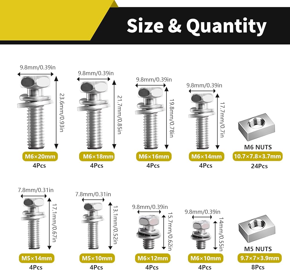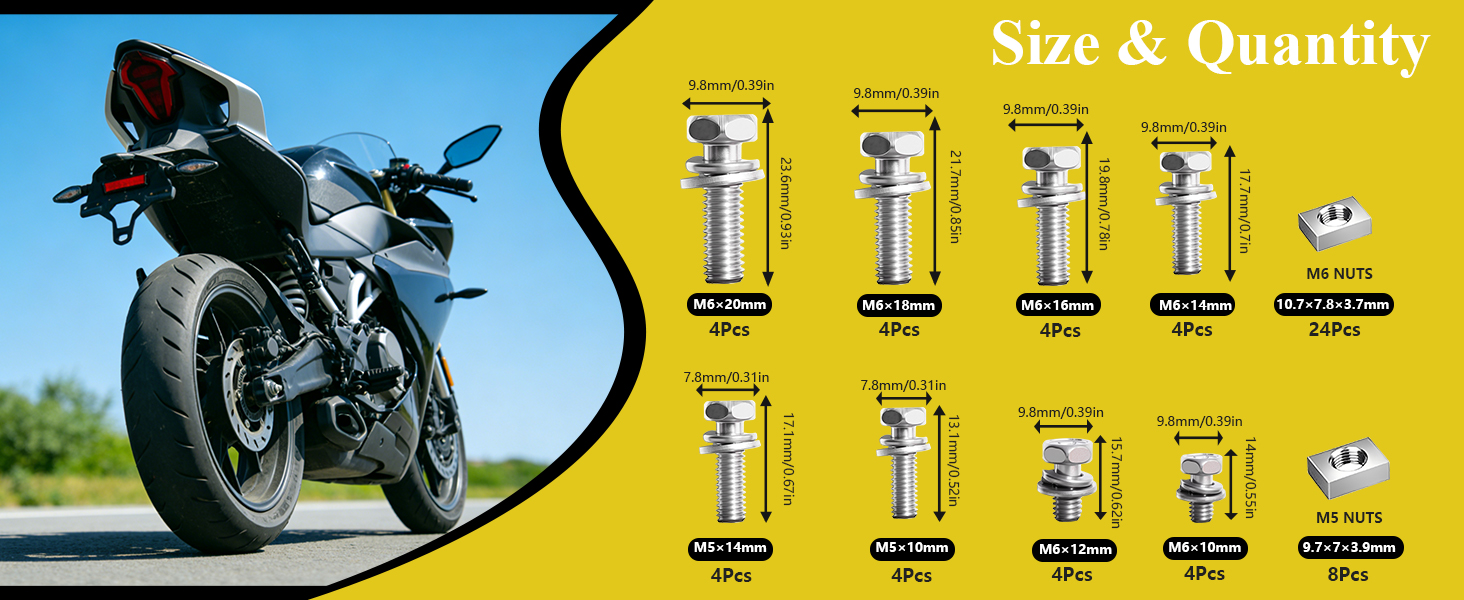 8 أحجام مسامير وصواميل بطارية الدراجة النارية 304 براغي طرفية للبطارية من الفولاذ المقاوم للصدأ M6x10/12/14/16/18/20 M5x10/14 مم مع صامولة مربعة لسكوتر الدراجة ATV