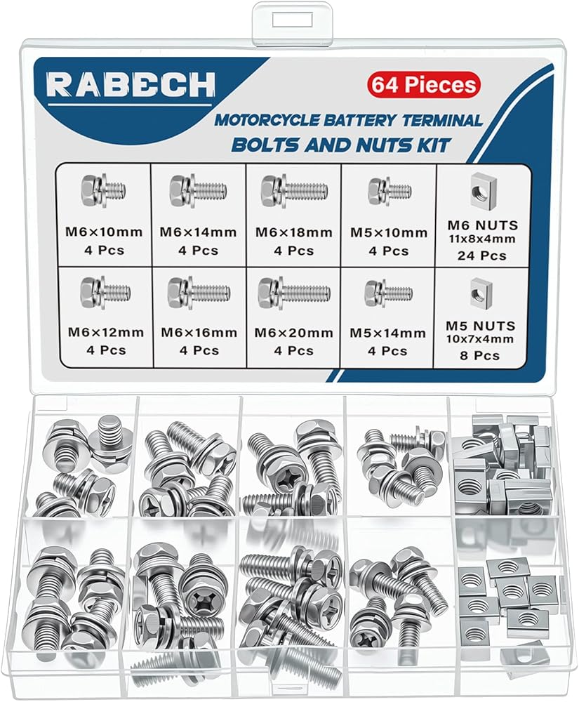 - طقم براغي وصواميل بطارية RABECH - أحجام مختلفة لتلبية احتياجاتك المختلفة.