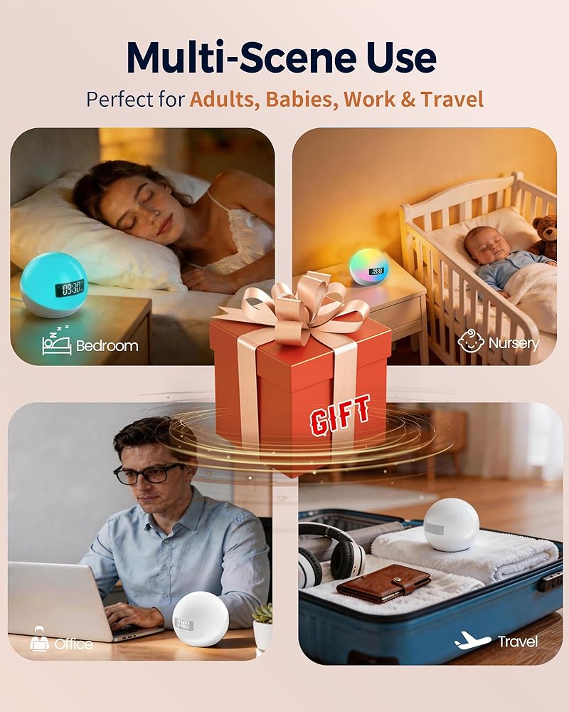 🎁 【هدية مثالية لنوم أفضل】 تعمل آلة صوت الأطفال هذه على تهدئة الأطفال حديثي الولادة والبالغين، وبناء الروتين. أنيقة مع عملية بلمسة واحدة. مثالية لأعياد الميلاد أو أعياد الميلاد أو لزيارة أحبائك. طريقة مدروسة لمشاركة العافية.