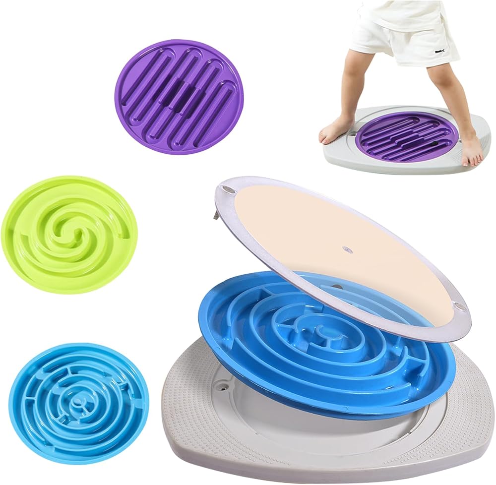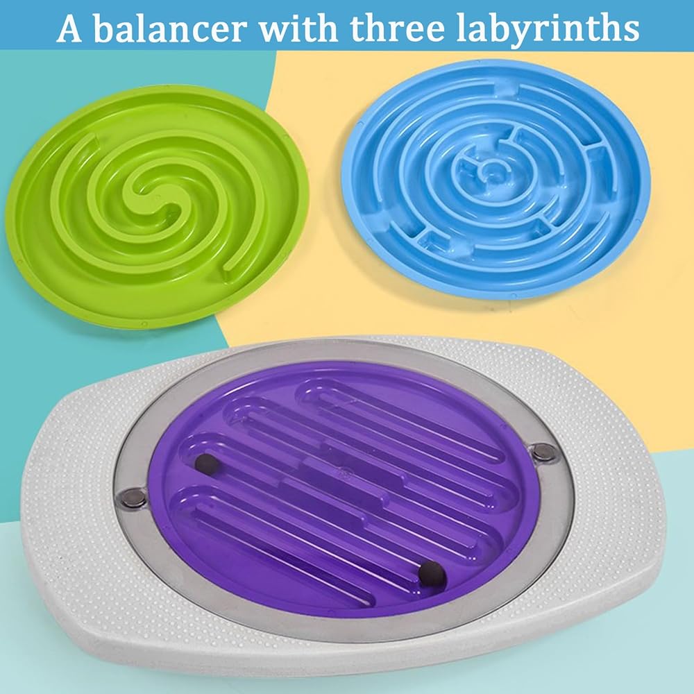 متاهة لوح التوازن، لوح توازن المتاهة المتأرجحة مع 3 أقراص دوارة قابلة للتبديل وكرتين للتمرين والعلاج الطبيعي والترفيه