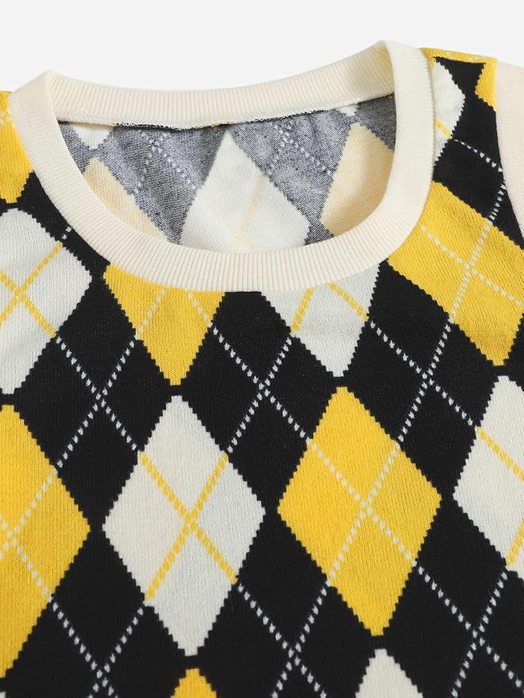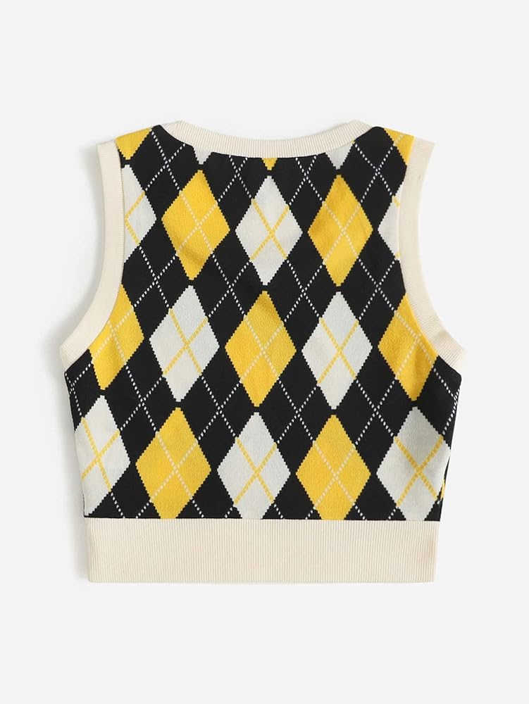 Verdusa Women's Argyle Print Sleeveless Round Neck Sweater Vest Tank Top