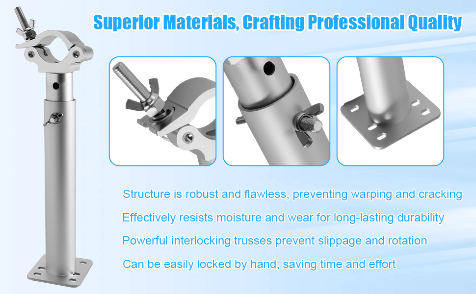 تركيب سريع محكم يدويًا: مزود بمسامير شد يدوية عالية عزم الدوران، مما يسمح بسهولة الشد والفك بدون مفاتيح ربط أو أدوات إضافية، ويحسن بشكل كبير من كفاءة التثبيت في الموقع، مما يجعله مثاليًا للعروض السياحية أو المعارض أو المراحل المؤقتة أو التحولات السريعة، مما يقلل بشكل كبير من العمل والوقت