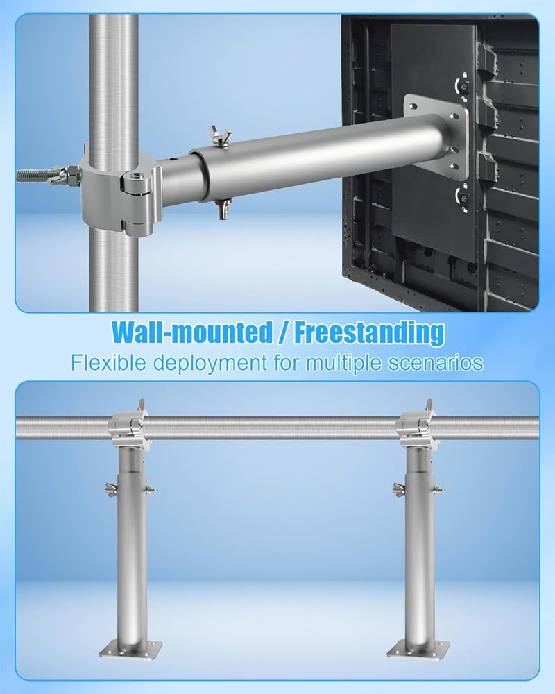 نطاق الارتفاع المرن: يغطي النطاق التلسكوبي 30-50 سم، مما يسمح بالتعديل السريع ليناسب بيئات التثبيت المختلفة، بما في ذلك ارتفاعات السقف المتفاوتة، وسمك الشاشة، والتباعد بين الوحدات، ويضمن هيكل القفل الذاتي الاستقرار ويمنع الانزلاق بعد التعديل، مما يضمن استواء الشاشة بشكل عام