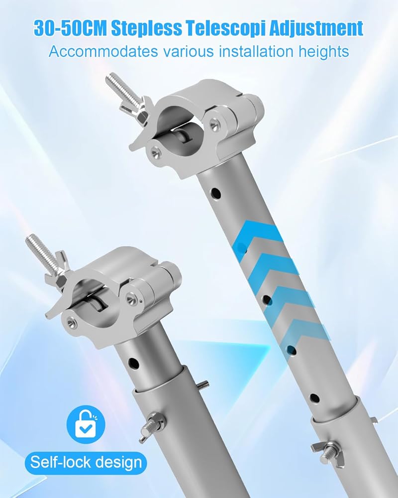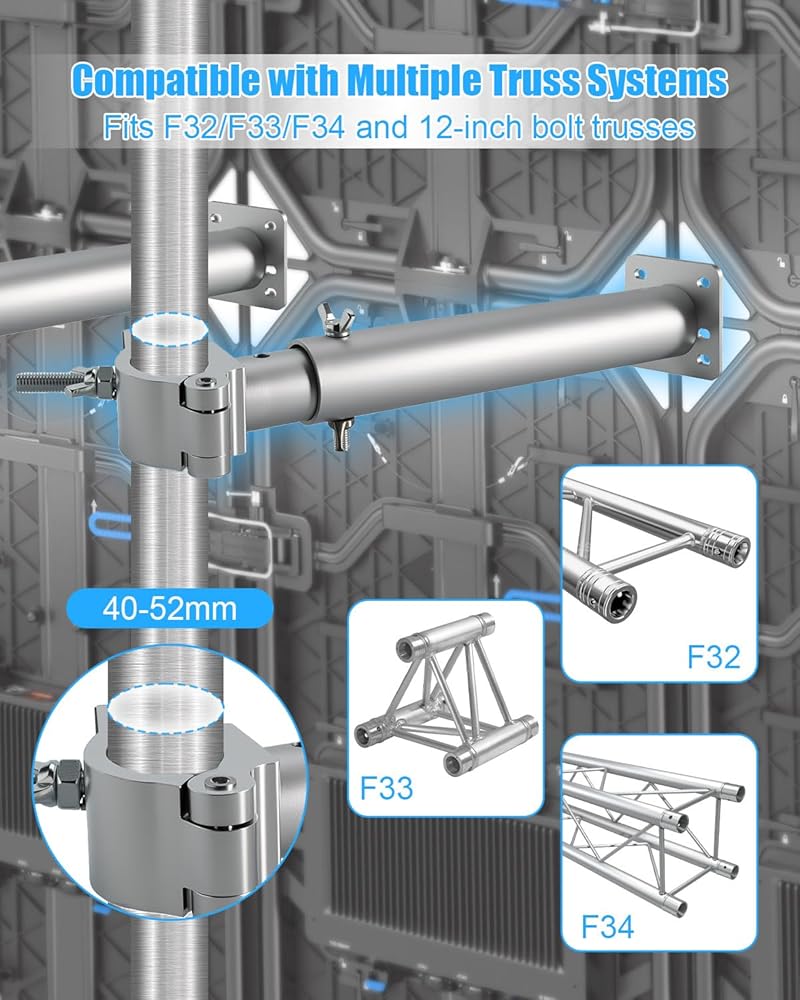 مشبك دعم شاشة LED قابل للتعديل، حامل قابل للتمديد من سبائك الألومنيوم 2-حزمة 30-50 سم، متوافق مع تروس F32/F34/F33 وأنابيب 40-52 مم، دعامة تثبيت سريعة لمعارض الأحداث المسرحية