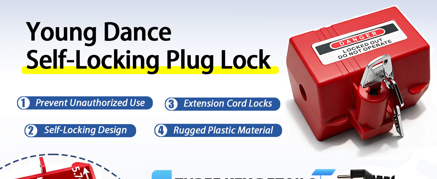[تصميم ذاتي القفل] يتميز هذا القابس للأسلاك بآلية قفل ذاتي متكاملة - لا حاجة إلى قفل. يأتي مع مفتاحين لسهولة التشغيل: فقط أدخل القابس وأدر المفتاح للقفل أو الفتح. حل أمني مريح وشامل.
