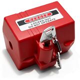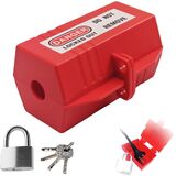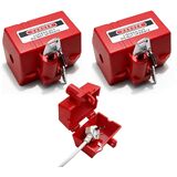 قفل التوصيل لأسلاك الطاقة 110-220 فولت، أجهزة قفل سلك التمديد ذاتية القفل وأجهزة Tagout مع مفتاحين، متوافق مع OSHA للمصنع والمنزل، سلاسل إضاءة عيد الميلاد (صغيرة، 3.3x1.8x2.4 بوصة، أحمر)
