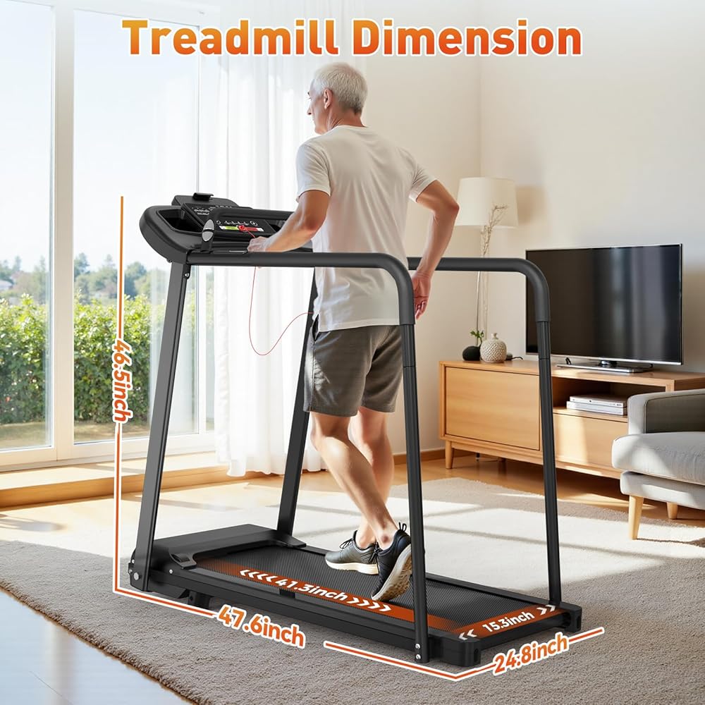 【سهلة الحركة وصديقة للعائلة】: تتيح لك العجلات المدمجة نقل جهاز المشي المدمج هذا دون عناء (47.6 طولًا و24.8 عرضًا و45.1 ارتفاعًا بوصة). بسعة 300 رطل ومحرك هادئ بقوة 2.5 حصان، فهو مثالي لكبار السن وجميع أفراد العائلة.