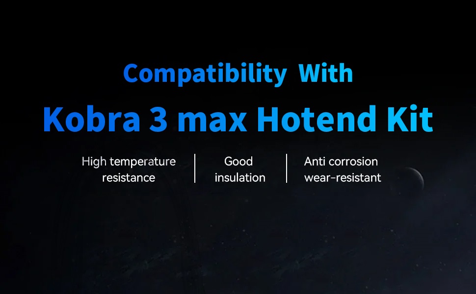 1️⃣ Hotend من سبائك التيتانيوم ذات درجة الحرارة العالية - يتميز جهاز Kobra 3 Max hotend الذي تمت ترقيته بتصميم مدمج لكسر الحرارة من سبائك التيتانيوم، قادر على التعامل مع درجات حرارة طباعة تصل إلى 500 درجة مئوية. يوفر توصيلًا حراريًا استثنائيًا، وعزلًا فائقًا، وأداءً مستقرًا للمواد ذات درجة الحرارة العالية مثل ASA، والكمبيوتر الشخصي، وخيوط ألياف الكربون.