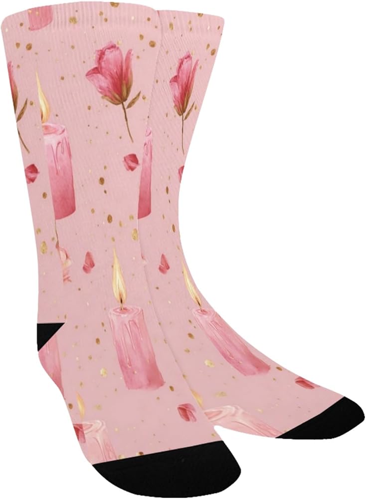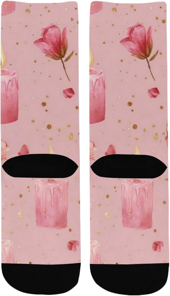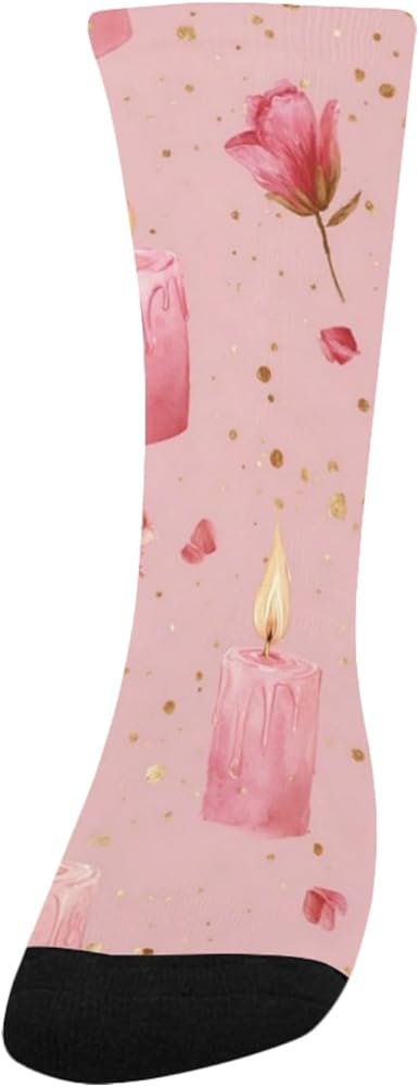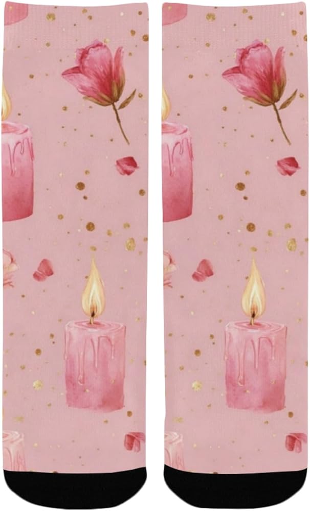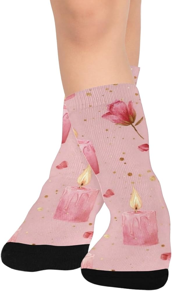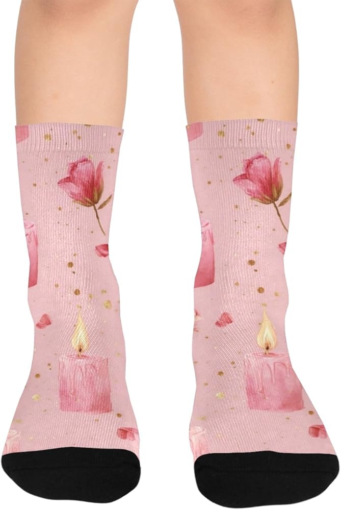 جوارب مشي لمسافات طويلة باللون الوردي بتصميم لهب رومانسي - جوارب شتوية حرارية سميكة دافئة للأولاد والبنات الصغار للمدرسة، والارتداء اليومي والأنشطة الخارجية