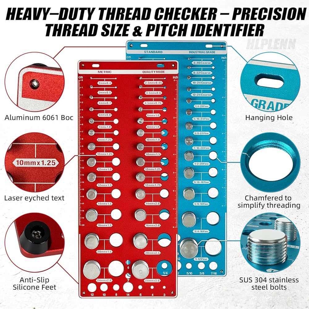 متانة بدرجة احترافية: مقياس فحص الخيوط مصنوع من سبائك الألومنيوم المؤكسدة بآلة CNC والفولاذ المقاوم للصدأ US304، ويتحمل الاستخدام الثقيل، ويضمن الدقة والأداء طويل الأمد للاستخدام المتكرر في ورشة العمل