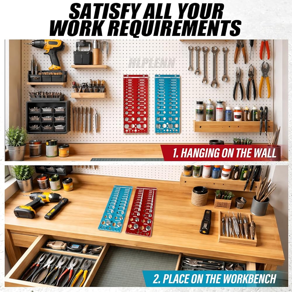 سهلة الاستخدام والحمل: ما عليك سوى مطابقة الصواميل/المسامير مع الفتحات المقابلة (التعرف على 2-3 ثوانٍ)، الفتحات المزدوجة العلوية تسمح بتعليقها على الحائط لتوفير المساحة، ويمكن حملها لسهولة التخزين في المرآب أو ورش العمل