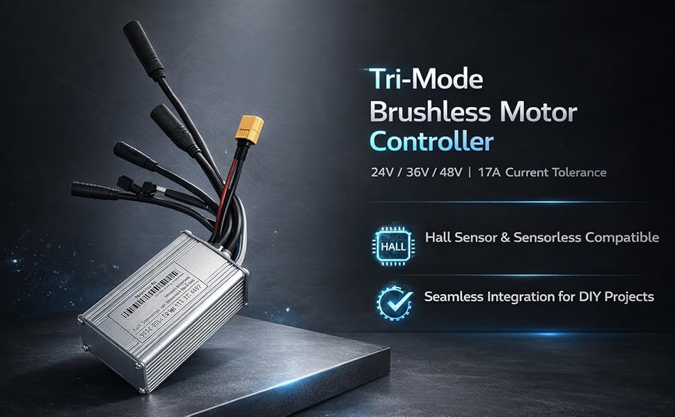 • وحدة التحكم: وحدة التحكم ذات 3 أوضاع متوافقة مع Hall وبدون محرك بدون فرش Hall. مناسبة مع محرك Hall وبدون فرش Hall.