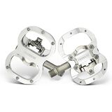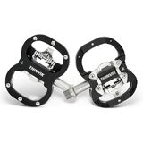 [Dual-Sided Pedals] one locking tread and the other flat tread, for Shimano SPD system cycling shoes and regular shoes. Flat tread: A large enough tread and raised studs ensure the shoe stays on the pedal.